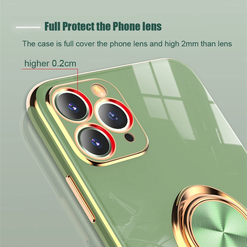 Роскошный чехол с кольцом с покрытием для iPhone 13 12 Pro Max XS XR X 7 8 Plus iPhone11 11Pro, мягкий силиконовый чехол-держатель для телефона, чехол