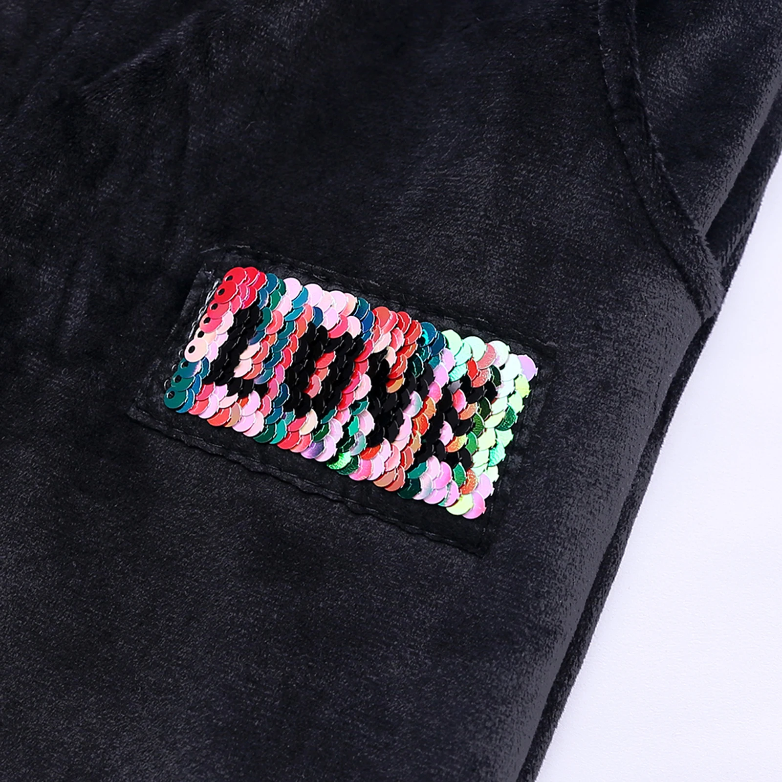 Детская модная футболка с блестками и буквенным принтом и брюки костюм из двух предметов-идеальный костюм, который сделает детей осенью освежающими и удобными, полными энергии и жизненной силы. Эти повседневные топы с длинными рукавами и капюшоном и длинные штаны с карманами идеально подходят для детской поездки.