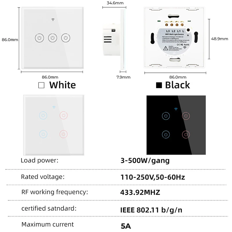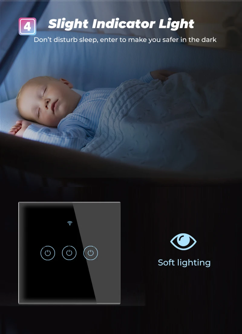 【Чувствительное сенсорное управление】Сенсорный экран из закаленного стекла этого Смарт-переключателя чувствителен к касанию управления, высококачественный прочный стеклянный материал обеспечивает до 20 миллионов сенсорных фигур через наше тщательное тестирование. Водонепроницаемость, защита от влаги, Защищает от царапин.