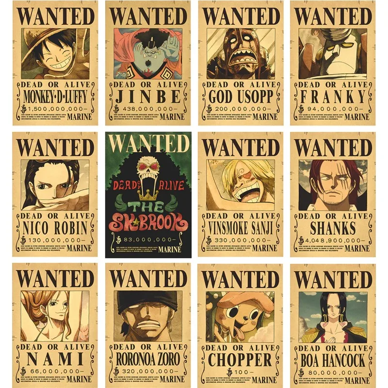 Аниме One Piece WANTED Luffy ACE Manga Piece Award Affiche Série Rétro Classique Caractère дом отель Декор Peinture