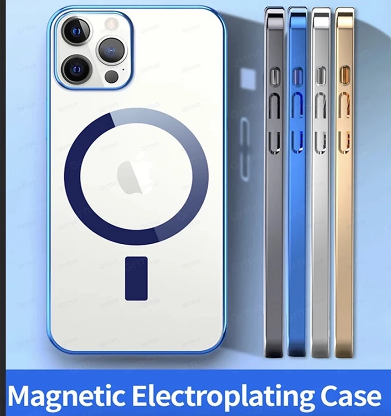 Прозрачный Магнитный чехол для iPhone 13 12 11 Pro Max, гальванизированный силиконовый чехол Magsafing с поддержкой беспроводной зарядки
