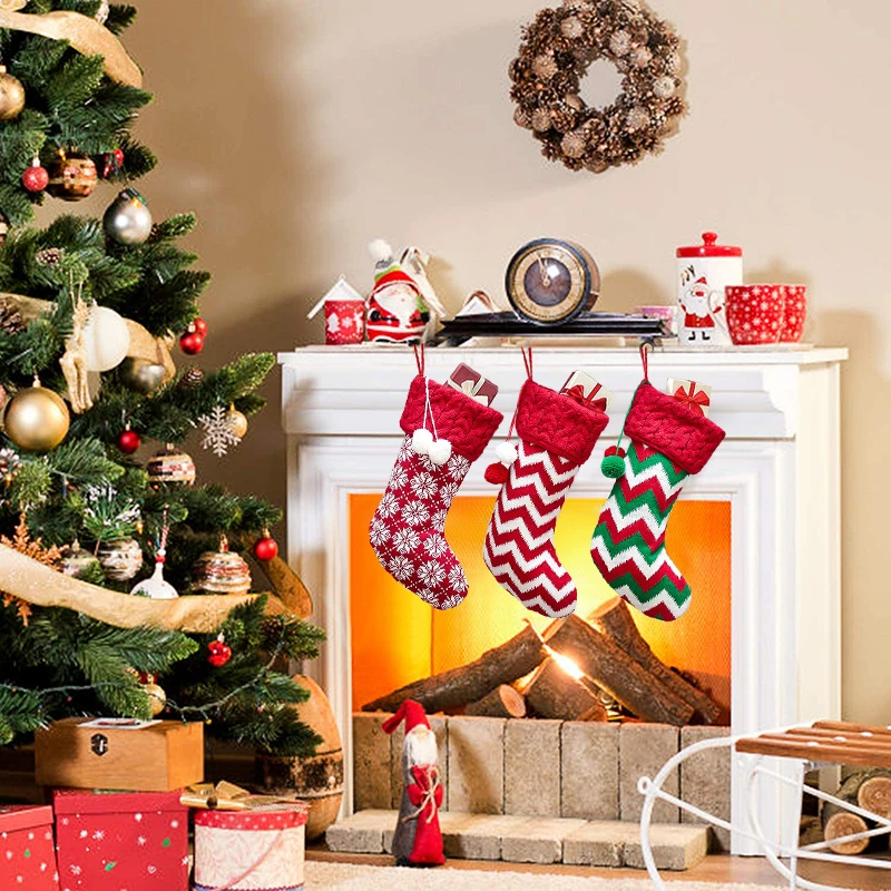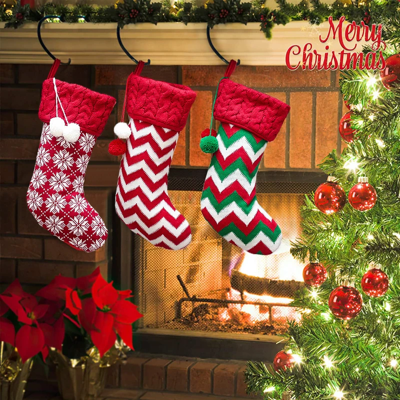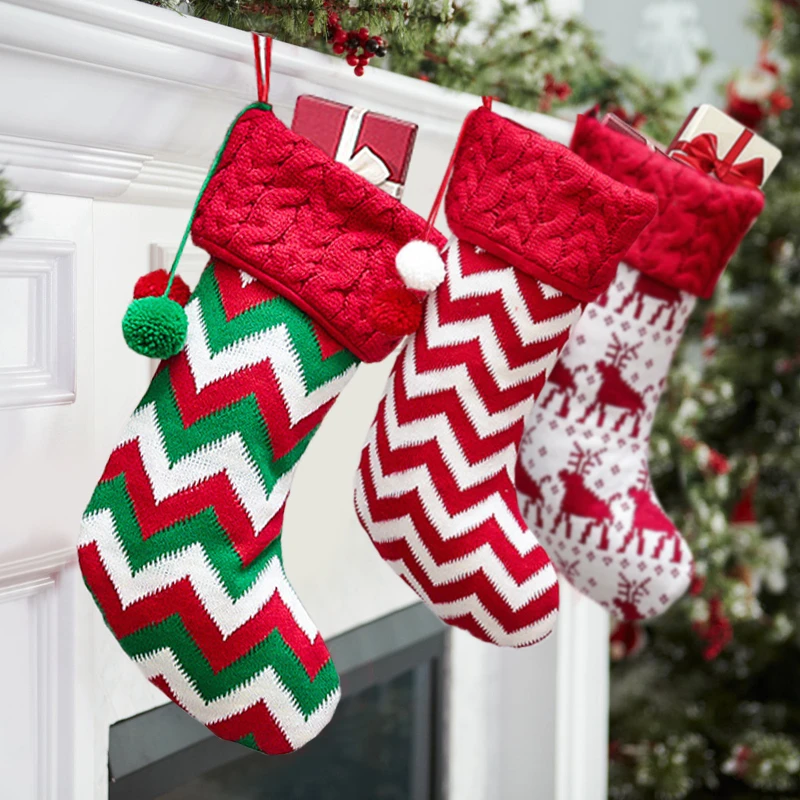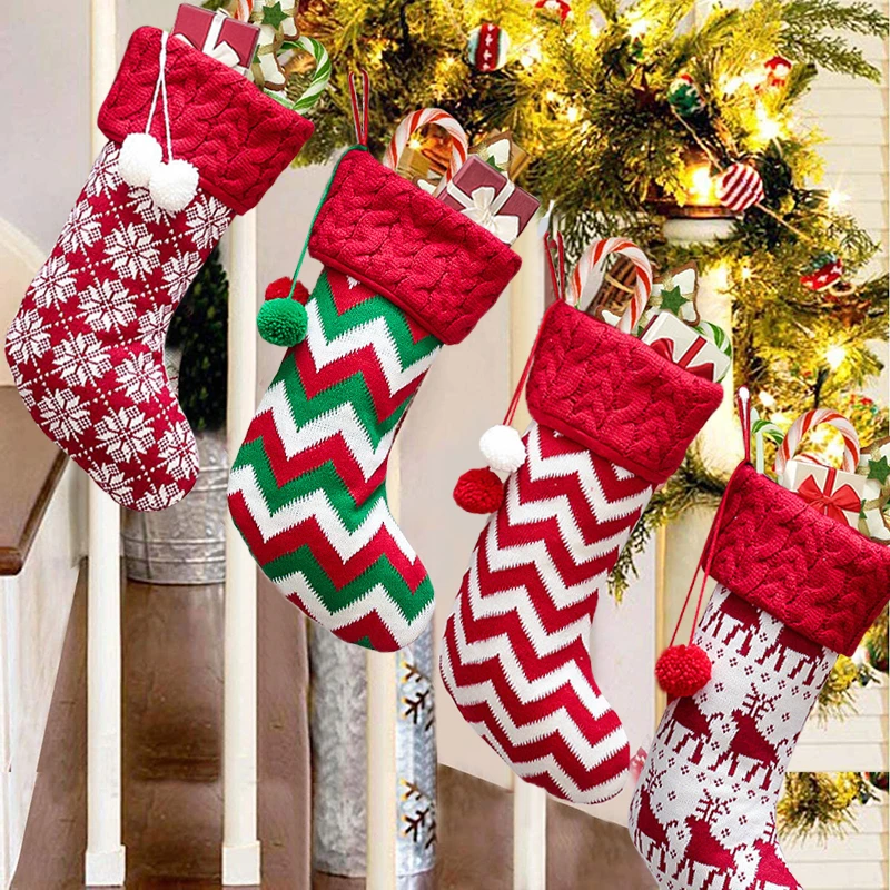 2020 рождественские чулки, новые рождественские украшения, вязаные рождественские чулки, женский красный и белый лось, Подарочная сумка, Детская подарочная сумка