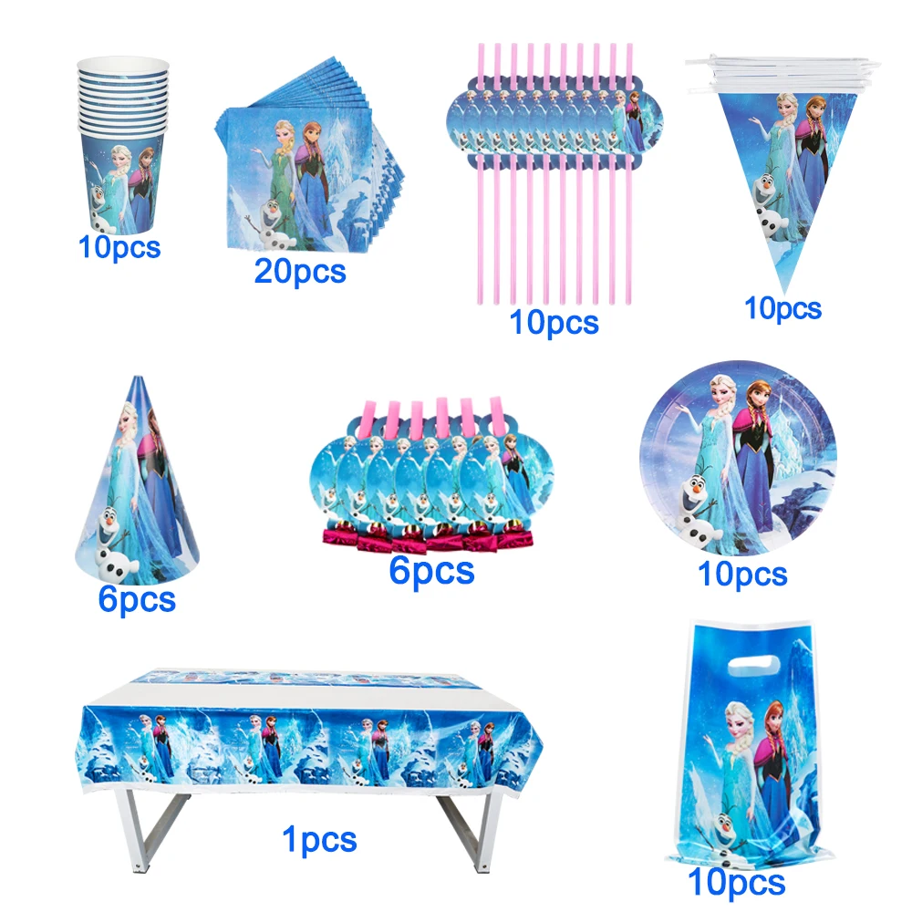 Шапка в стиле принцессы Холодное сердце, одноразовая посуда для вечеринки, тарелки с мультяшными героями Диснея для девочек, аксессуары