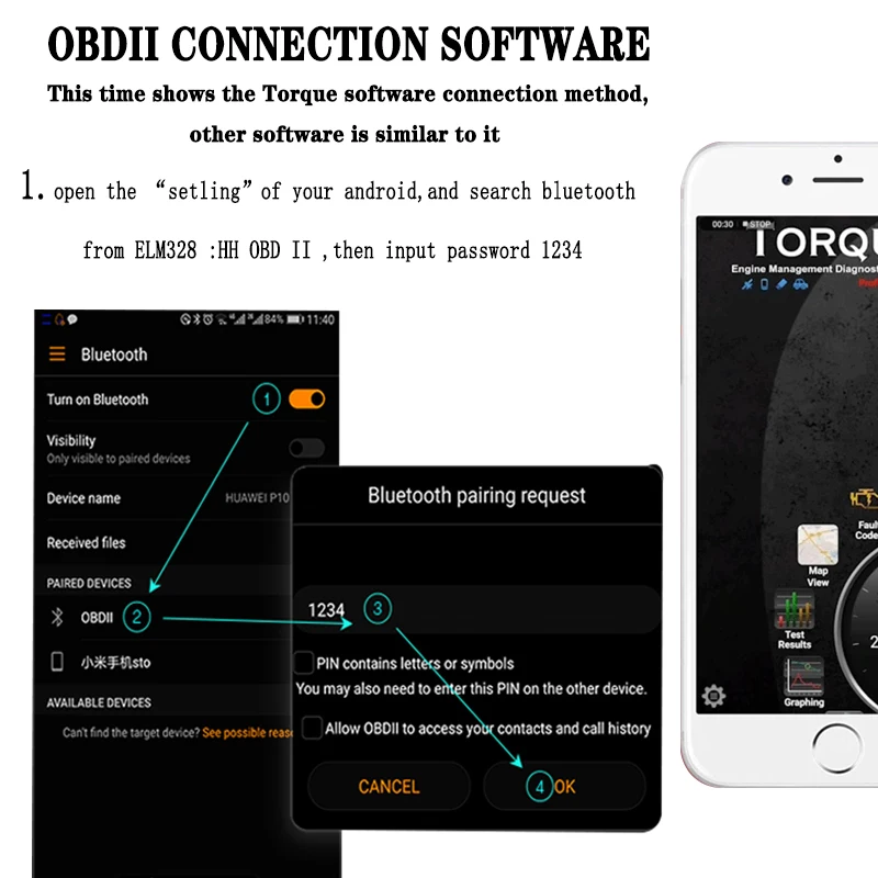 1. Откройте «Настройки» вашего android и найдите Bluetooth от ELM327:OBDll, затем введите пароль 1234.