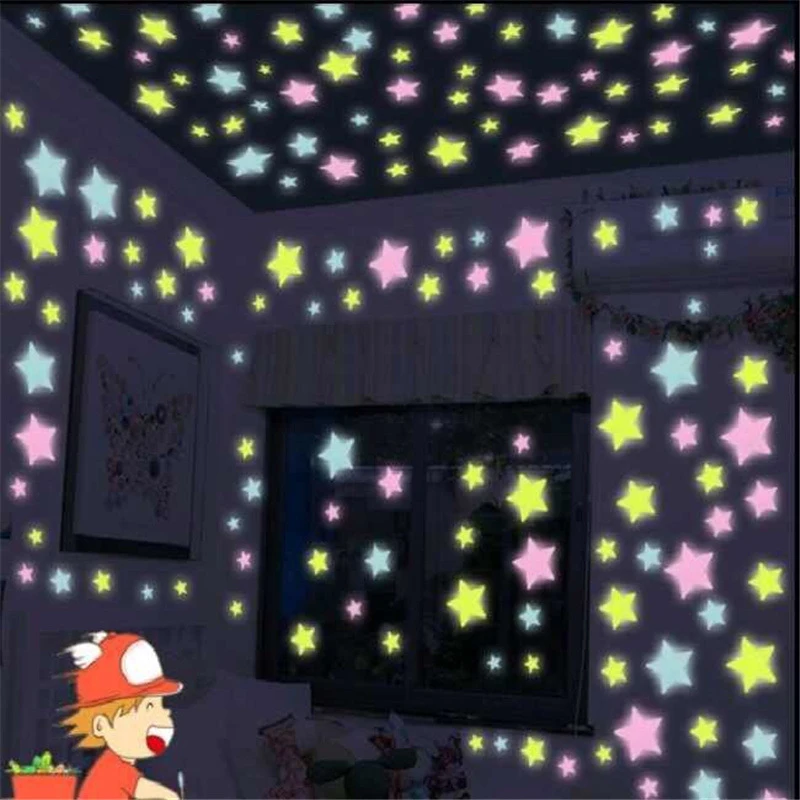 100 шт 3D звезды светится в темноте наклейка на стену для хранения энергии светящаяся флуоресцентная DIY Детская комната украшение на стену для гостиной
