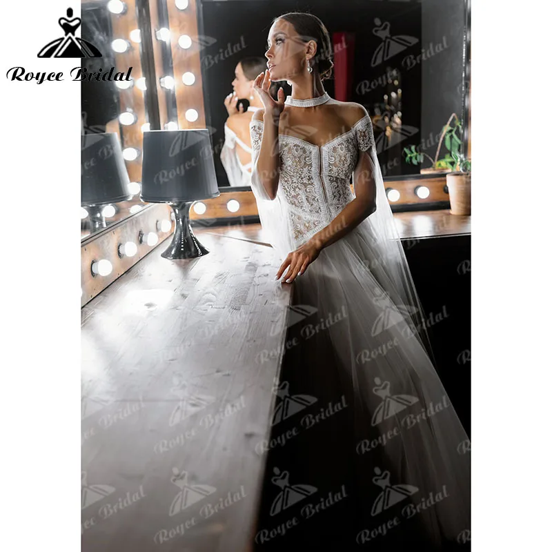 Женское ТРАПЕЦИЕВИДНОЕ свадебное платье, кружевное Тюлевое платье с открытой спиной, с накидкой в стиле бохо, лето 2022