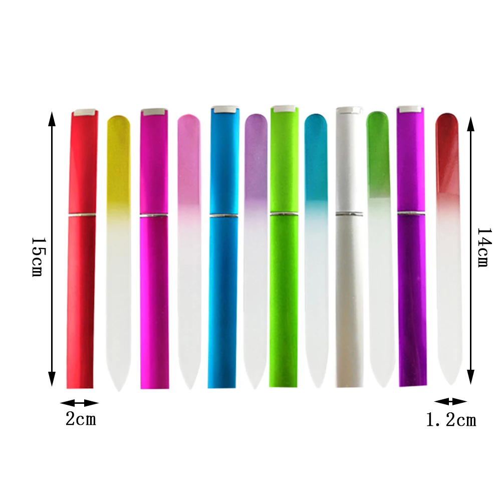 Эти необходимые инструменты для пилочки для ногтей отлично подходят для нанесения ногтей. Это идеальный способ создать красивый стиль и полированные ногти, специально разработанные для натуральных ногтей. Это идеальный подарок для девочек. Независимо от того, скошены ли ваши ногти, щетиной или просто ежедневным обслуживанием, это, безусловно, станет вашим лучшим инструментом! Спецификация: Цвет: 12 цветов на выбор Материал: Хрустальное стекло Посылка: 1 шт. пилка для ногтей 1 шт. защитный чехол