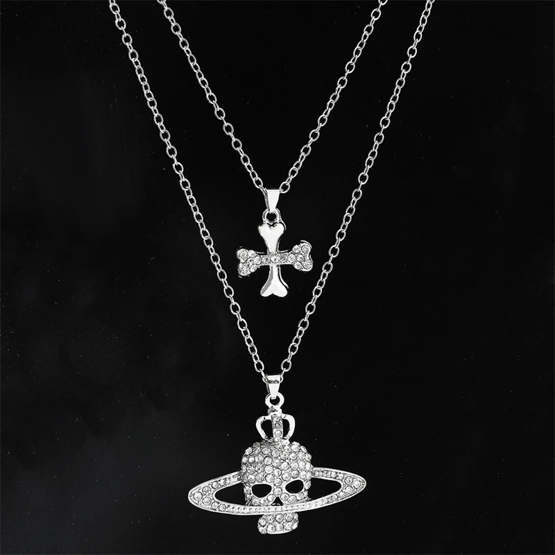 Крест Череп Сатурн ожерелье кристалл Rheinstone Кулон Готический см...