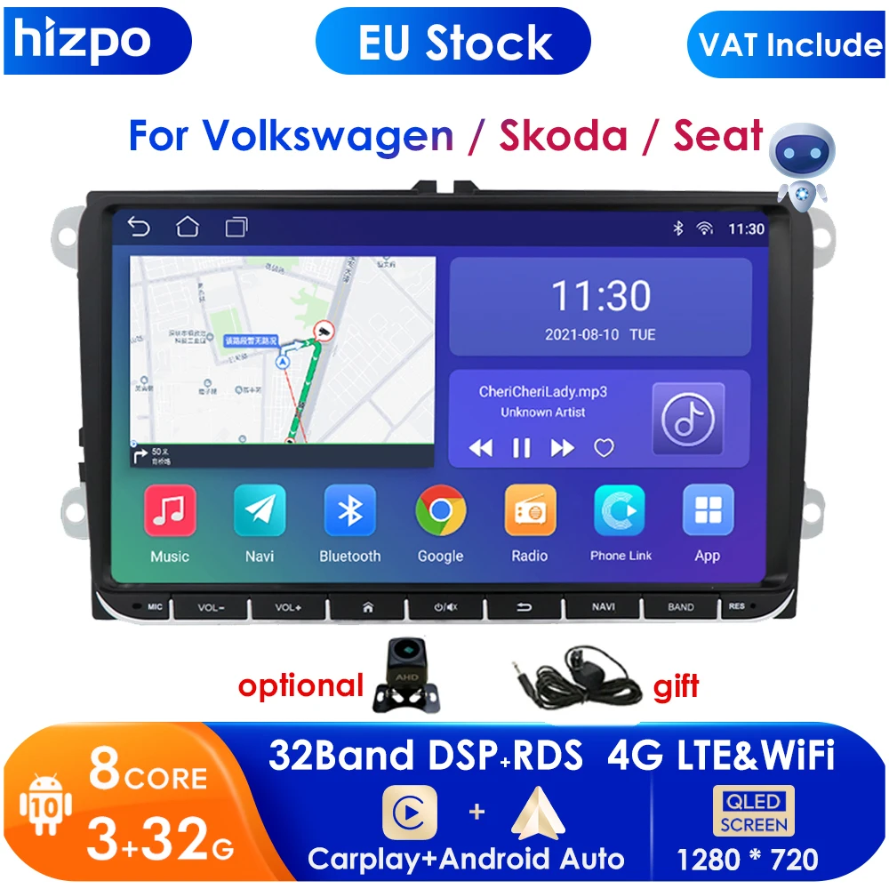 Автомагнитола на Android 10, мультимедийный плеер с GPS Навигатором, для VWVolkswagenGolfPassatb7b6SkodaSeatOctaviaPoloTiguan, типоразмер 2DIN, 4G