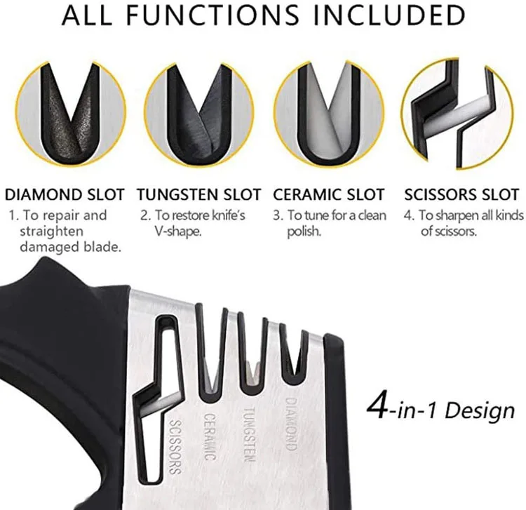 Эта точилка для ножей отлично подходит для всех типов ножей. Держите ножи острыми и готовыми к использованию. Он очень прост в использовании, очень прочный и долговечный