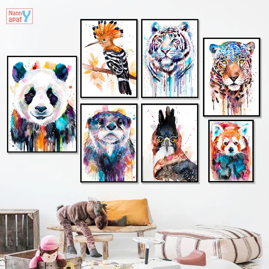 Красочная абстрактная картина с масляными элементами, Лев, тигр, лиса, попугай, панда, Детская гостиная, домашний декор