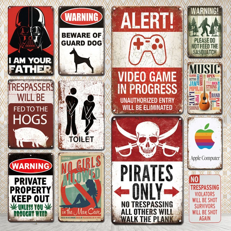 Предупредительный постер для видеоигр, металлическая пластина, знак...