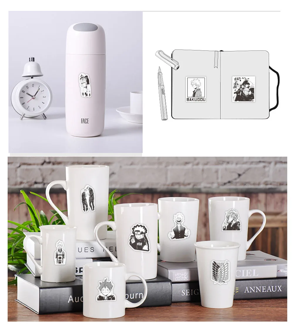 103050 шт. аниме-наклейки s, черно-белые Японские Аниме-наклейки DI...