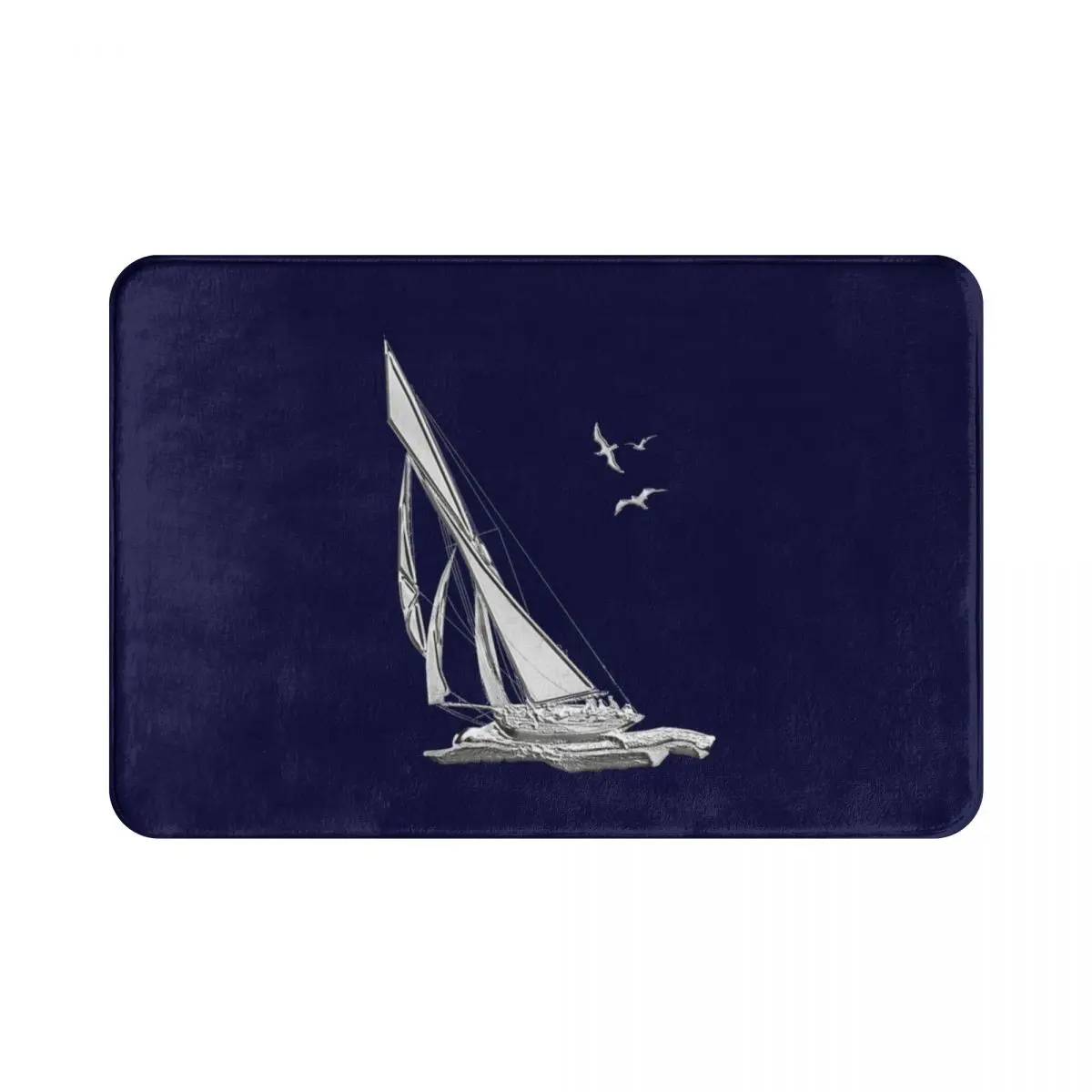 Хромированный коврик в морском стиле с парусной лодкой, коврик, коврик для ног, коврик для ванной, нескользящий коврик для туалета, балкона, водонепроницаемый, маслостойкий, модный