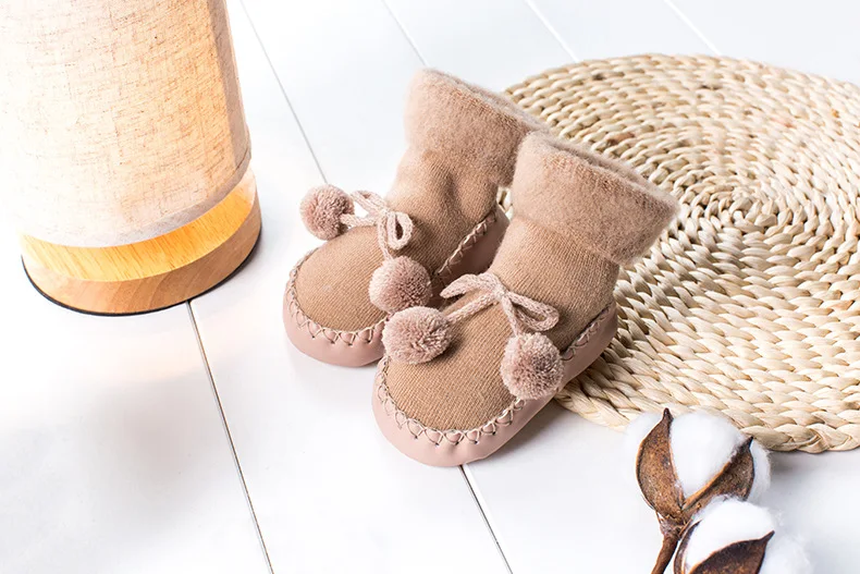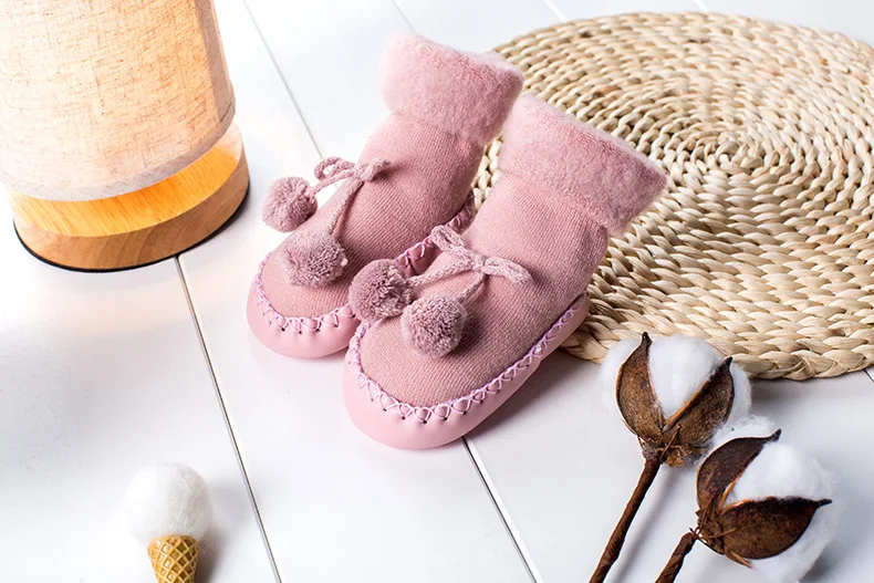 Новые рождественские носки для новорожденных, подарок для новорожденных, зимние детские носки с помпоном, плюшевая подкладка, теплые нескользящие носки для детей, мальчиков и девочек