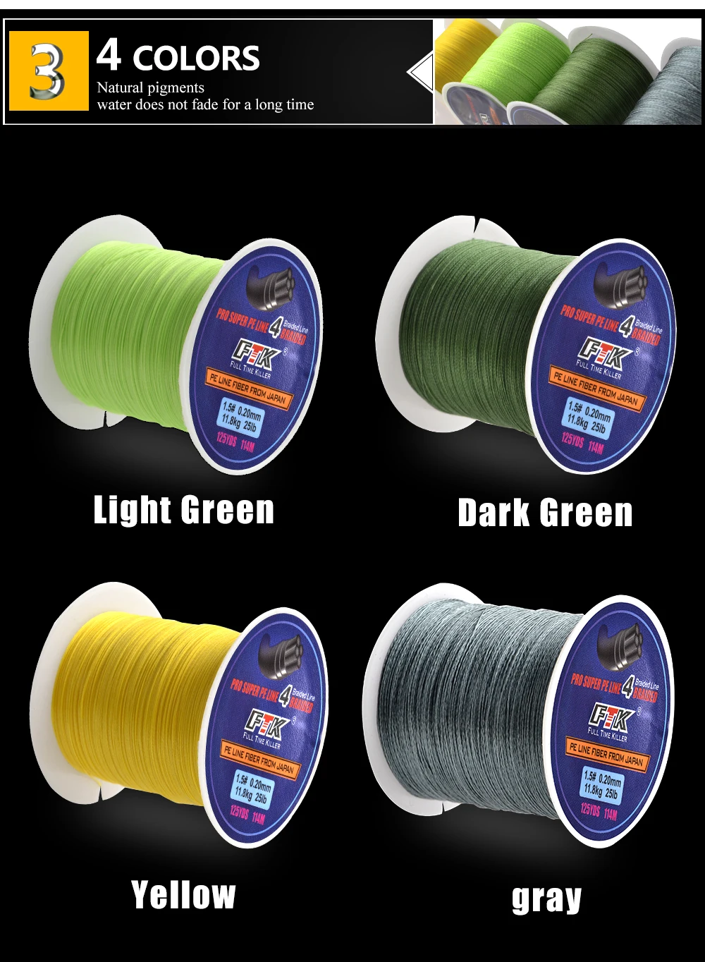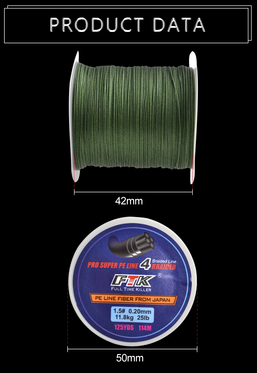 FTK 114 м рыболовная леска 125YDS 4 плетеная рыболовная леска 0,1 мм-0,4 мм 8LB-40LB мультифиламентная рыболовная леска супер полиэтиленовая леска из Японии