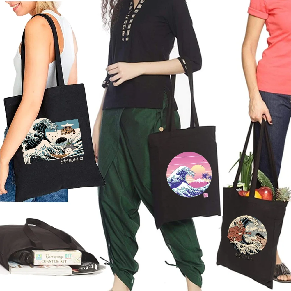 Сумка-тоут, сумки для покупок серии Wave, оригинальный дизайн, белая модная дорожная Холщовая Сумка унисекс через плечо, сумка для покупок