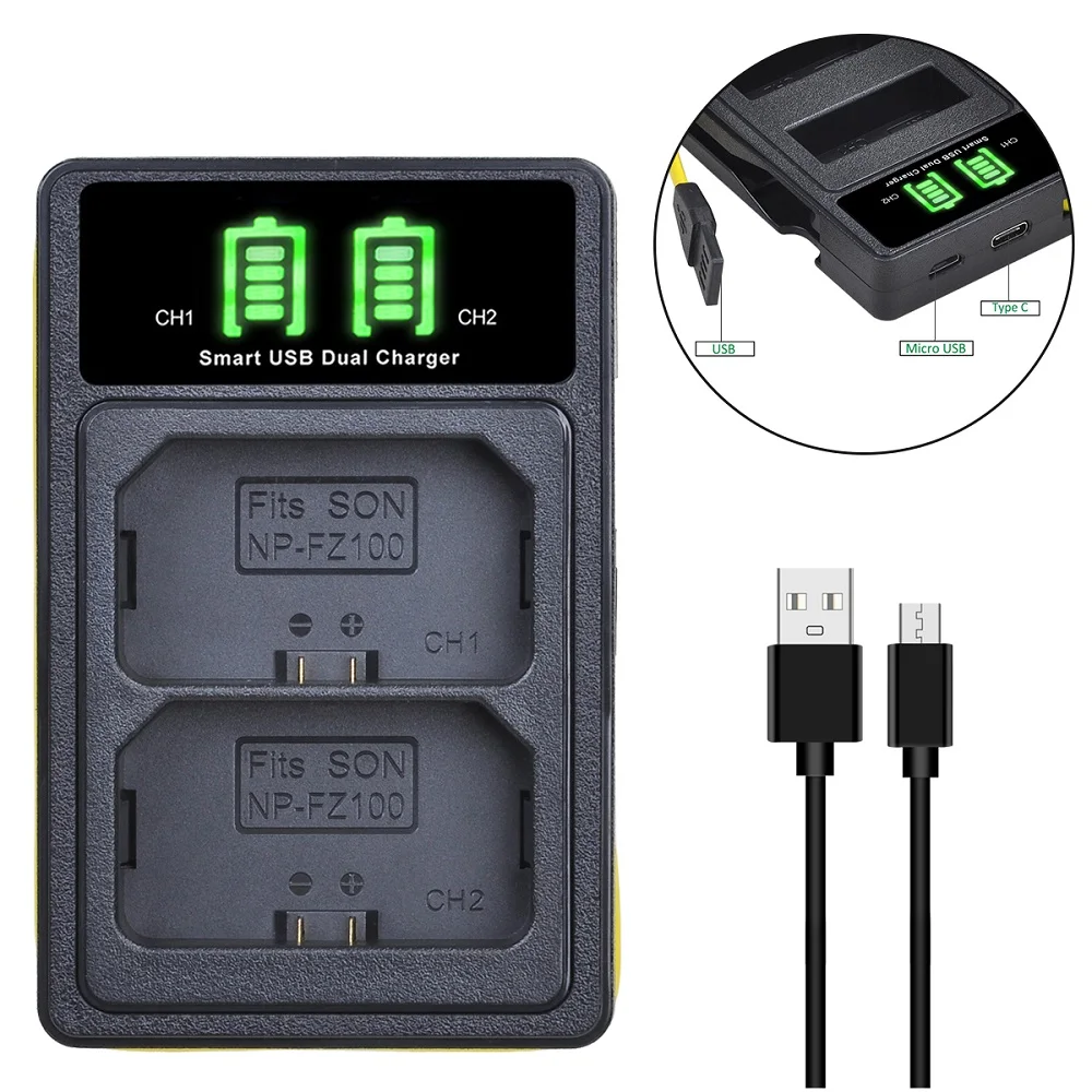 Аккумулятор Powertrust NP-FZ100 и двойное зарядное устройство USB для Sony Alpha A7 III, A7R III, A9, Alpha 9, A7R3, a6600, a7R IV, Alpha a9 II