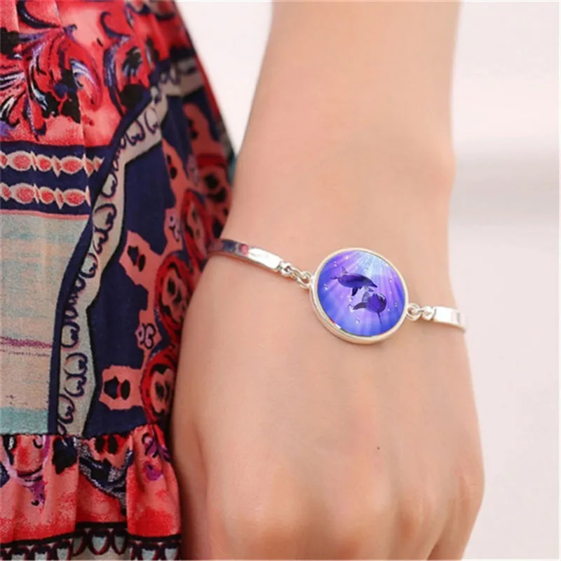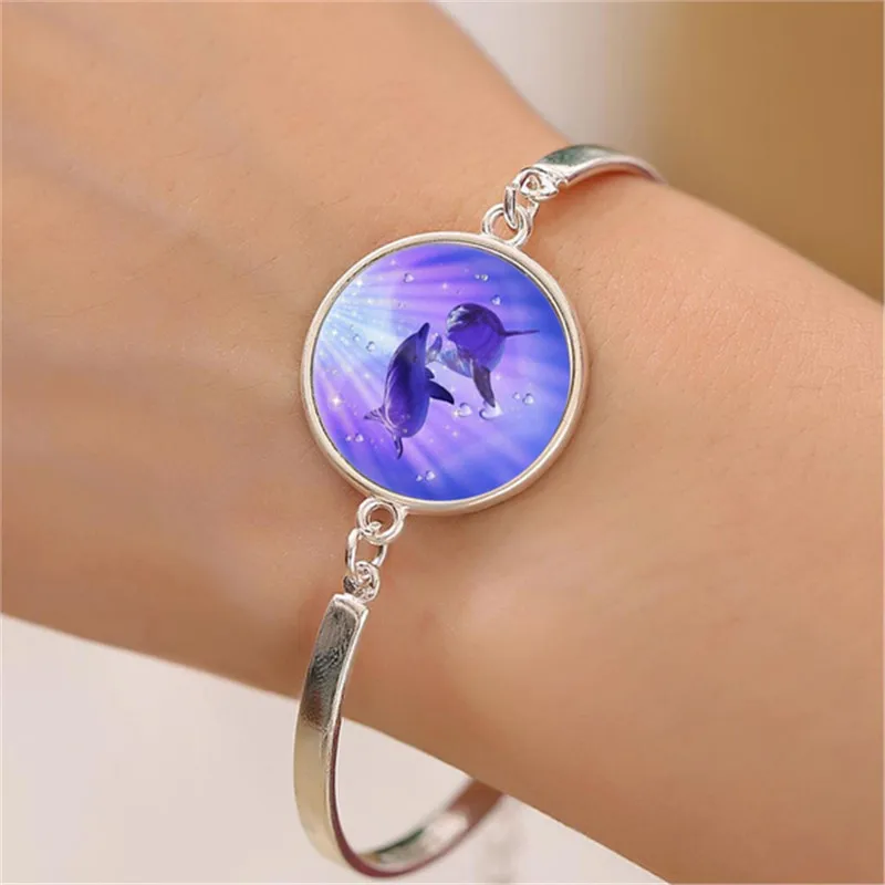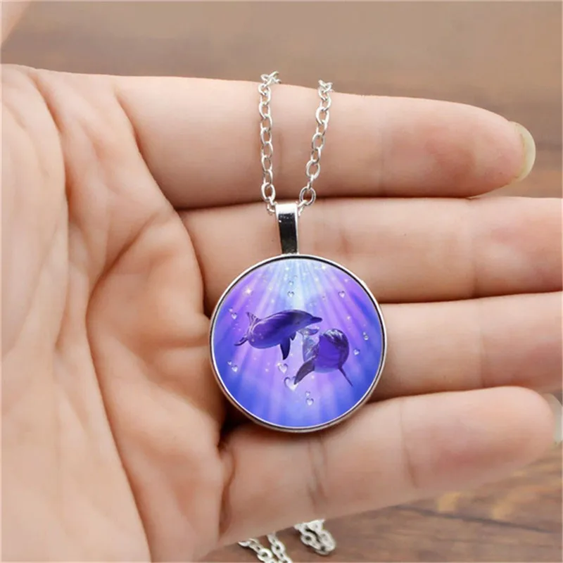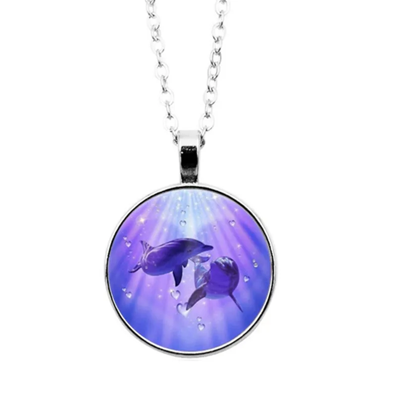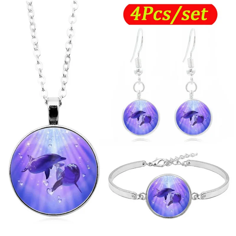Набор украшений с изображением дельфина и фото, ожерелье, серьги и браслет из кабошона, всего 4 шт. для женщин, модные подарки Вечерние