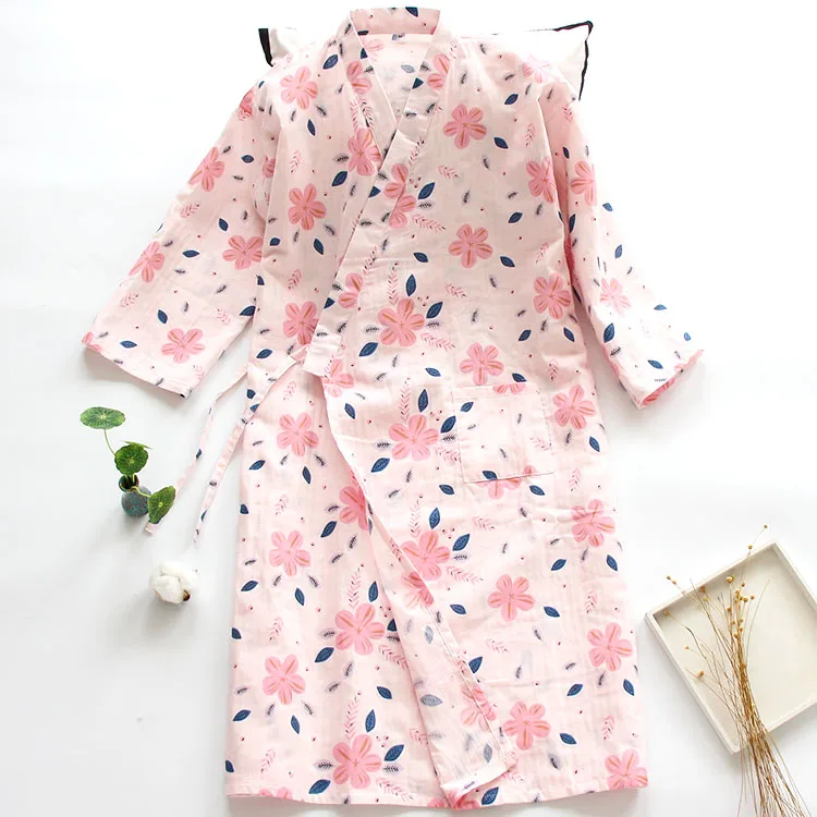 Женская ночная рубашка 2021, хлопковый банный Халат средней длины из хлопка и Марли в японском стиле, Свободный Летний мягкий удобный милый халат, Лидер продаж