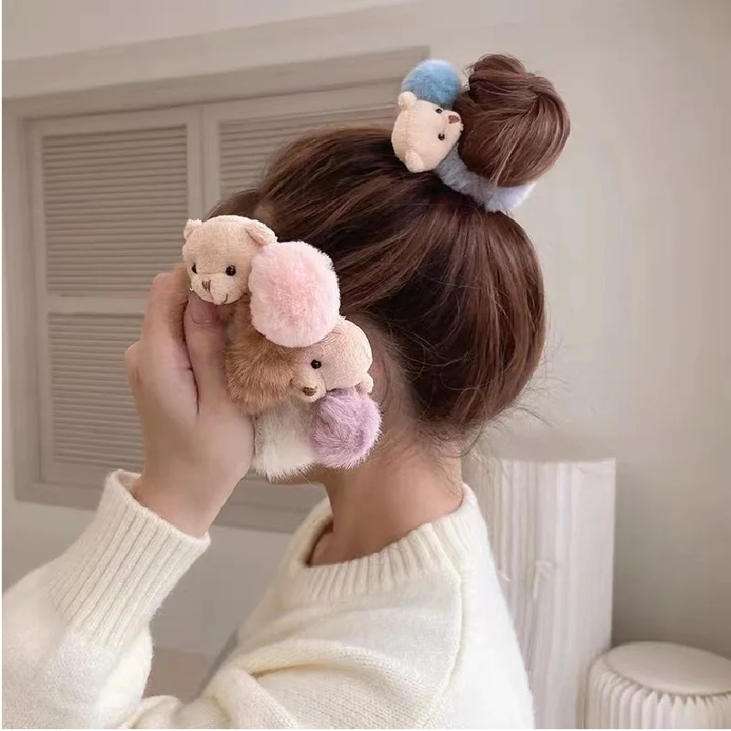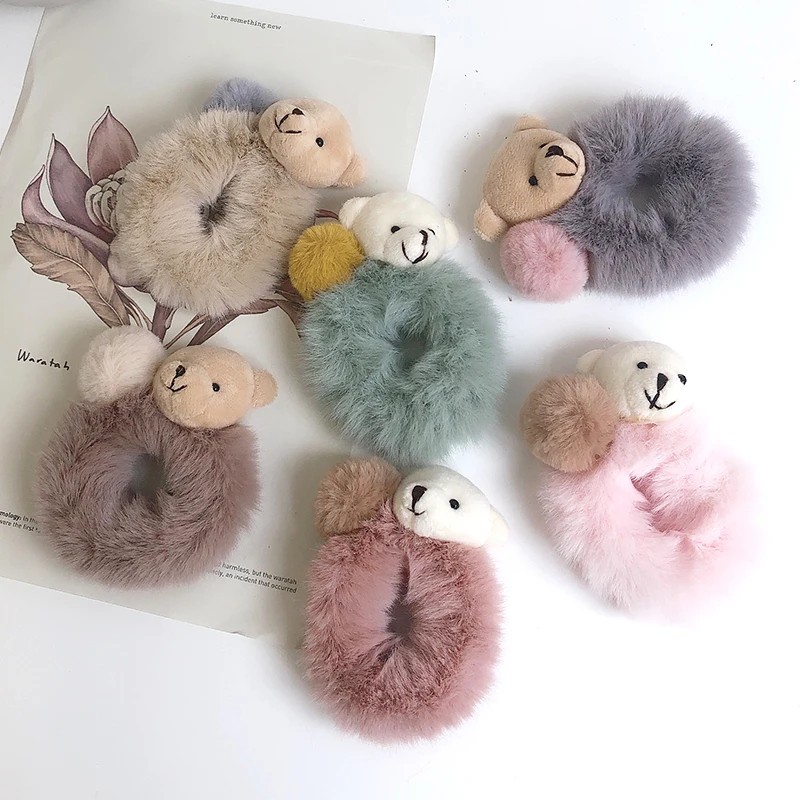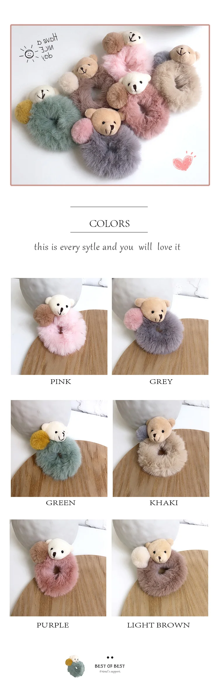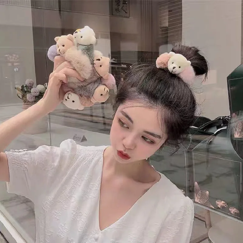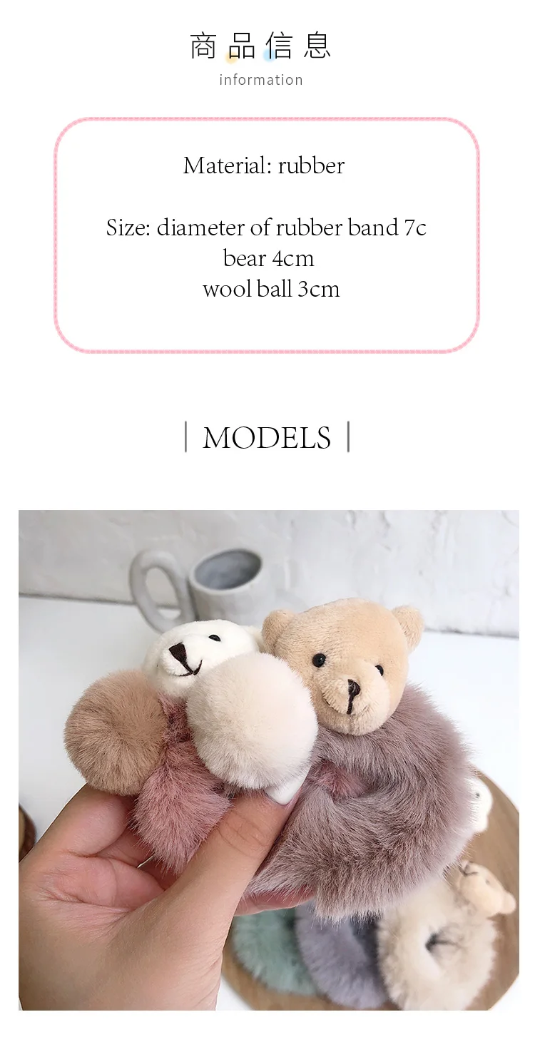 Новое поступление, милая искусственная веревка, пушистый мультяшный медведь, головной убор, милые взрослые, милые детские волосы, резинка, аксессуары для волос с шариковой головкой