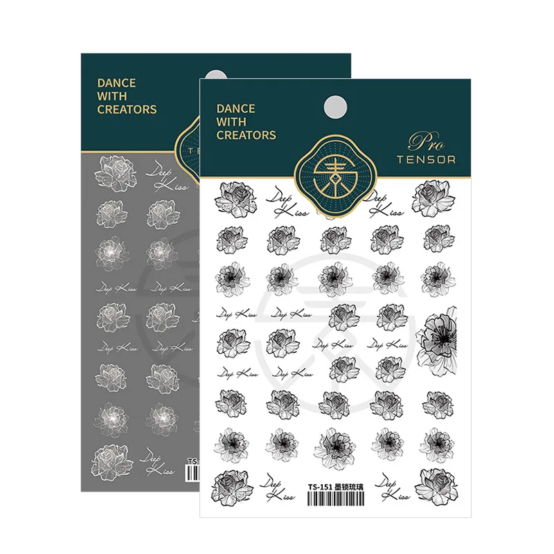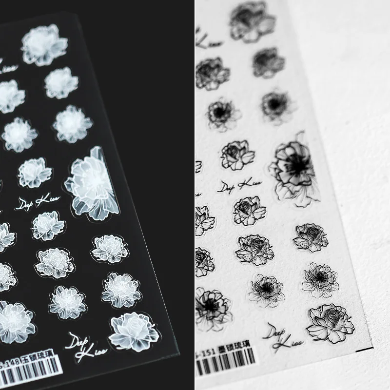 Цветочная наклейка для ногтей, черно-белые прозрачные матовые украш...