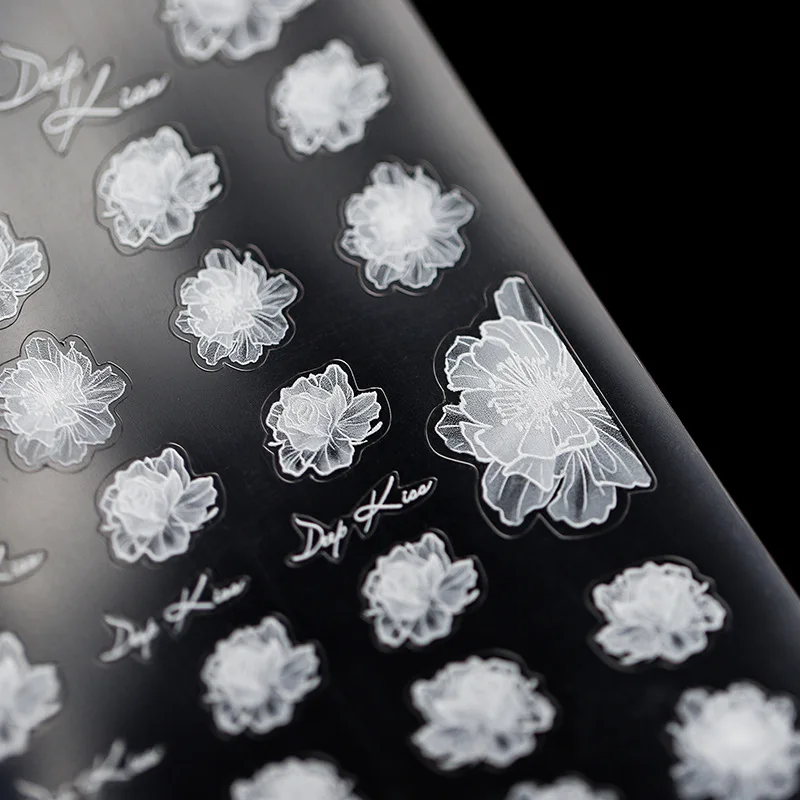 Акриловые наклейки для ногтей 5D с выгравированными белыми цветами,...