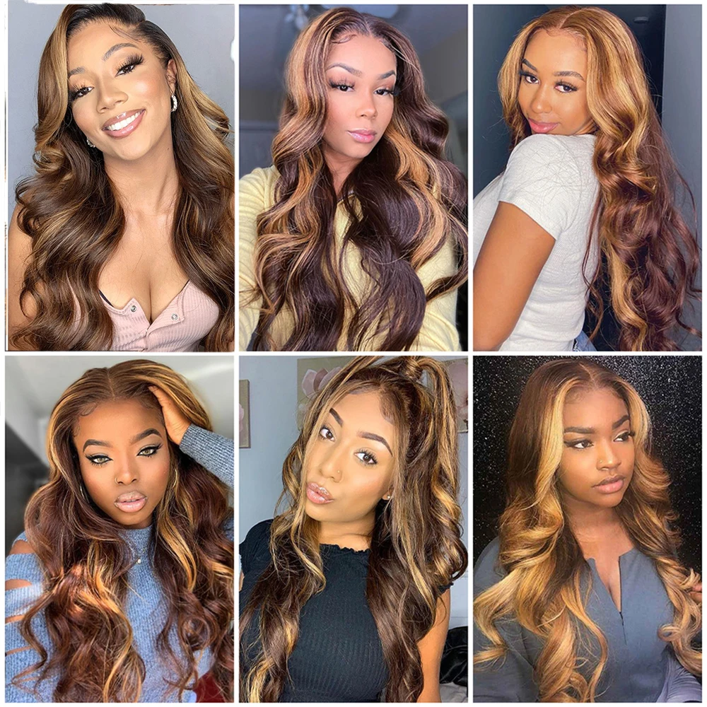 Пупряди волнистых волос Omber, 30 дюймов, бразильские человеческие волосы, 13 пряди, P427, пупряди медово-блонд-коричневые, волосы для наращивания без повреждений