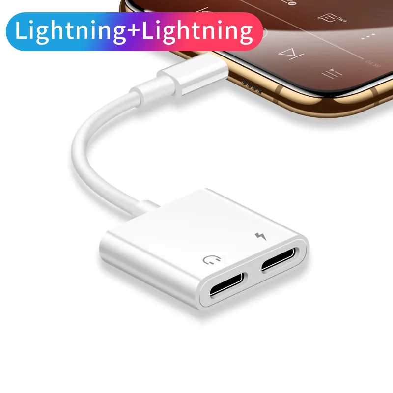 Аудиоадаптер с двойным освещением для IPhone 7, 8, X, XS MAX, XR, 11, 12, зарядка для наушников, Aux, 2 в 1, Разветвитель для наушников для IOS 11, 12