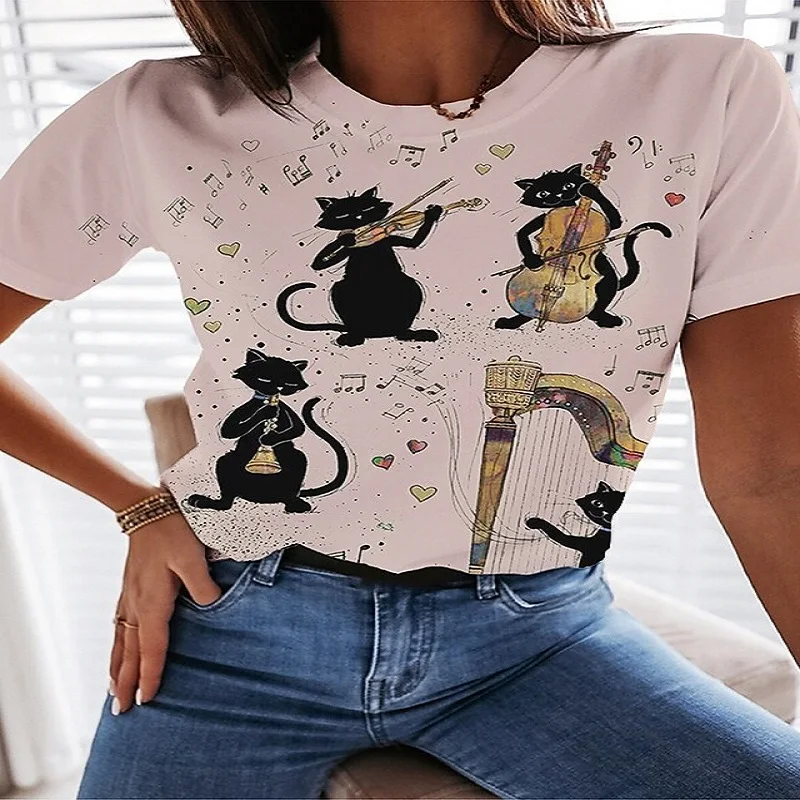 Женская одежда, футболка с котом, уличная одежда с коротким рукавом, женские тканевые топы, новая футболка большого размера для женщин