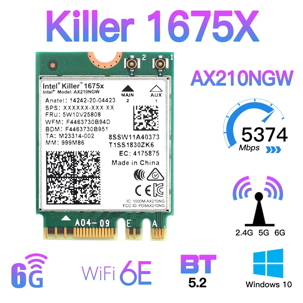 Беспроводная сетевая карта killer 1675X, 5374 Мбитс, совместимая с Bluetooth, для ноутбука или настольного компьютера, Gigabit, Transcend AX210NGW, поддержка Win11