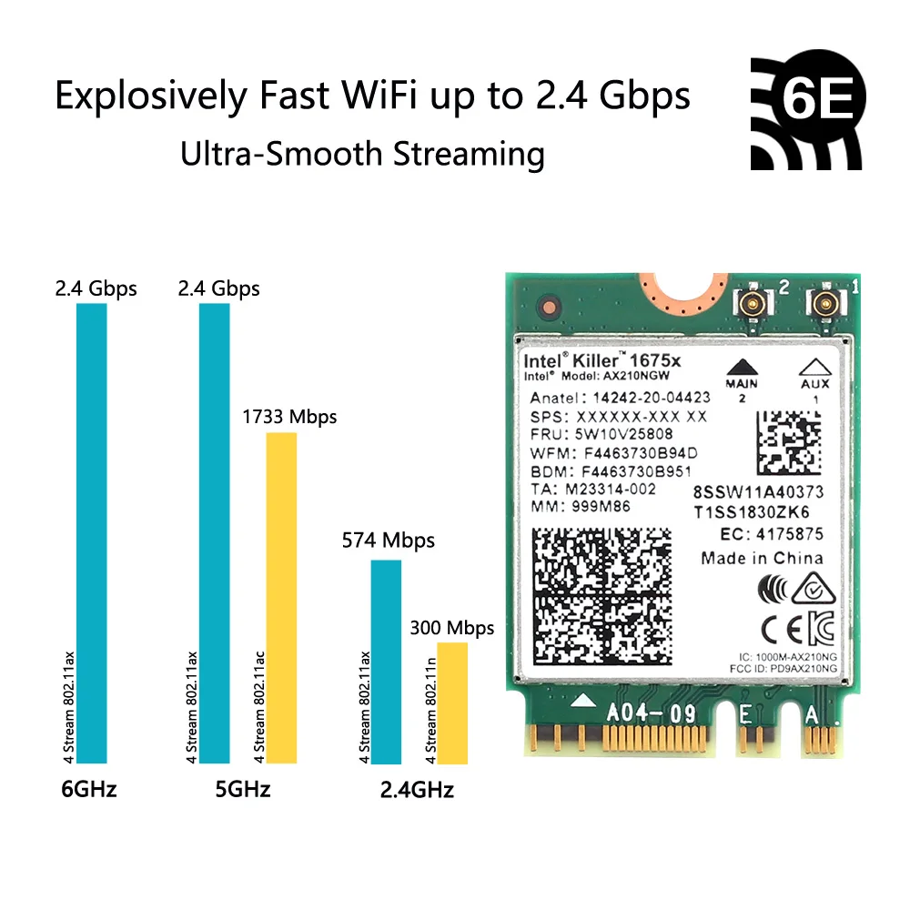Примечание: он не предоставляет драйвер для системы linux, пожалуйста, прочитайте его при размещении заказа.Особенности:Wi-Fi 6E intel AX210 убийца 1675X поддерживает 802.11ax MU-MIMO более 2,4 ГГц и 5 ГГц.Максимальная пропускная способность при поддержке Wi-Fi 6E AX210 является скорейшее 2,4 Гбит/с (160 МГц)AX210NGW поддерживает Bluetooth 5,2AX210 может обеспечить гигабитную скорость загрузки и значительно улучшить ваш опыт подключения дома, работы или на ходу.