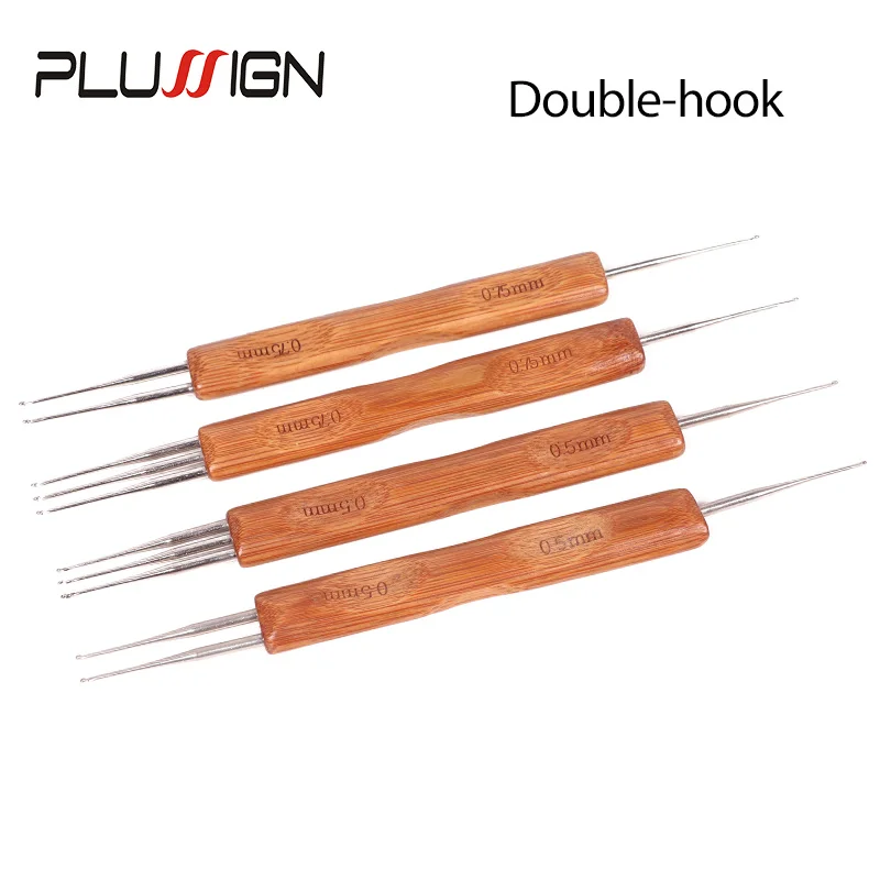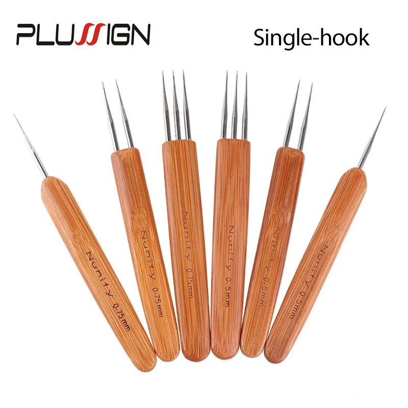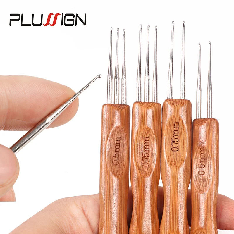 Инструмент для вязания крючком Plussign Dreadlock, плетение волос, крючок для вязания крючком, Бамбуковая ручка, 0,5 мм, 0,75 мм, инструменты для волос