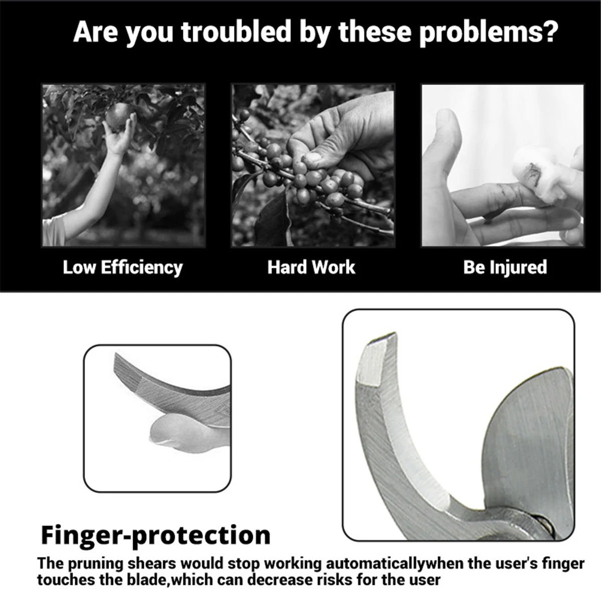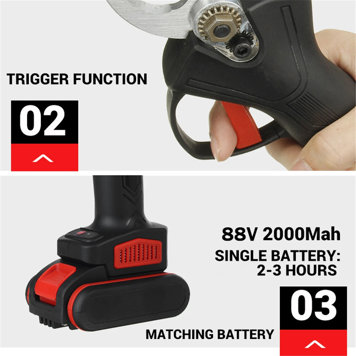 1. Более профессиональный: профессиональные беспроводные ножницы, выкованные SK5 из высокоуглеродистой стали. Этот материал очень прочный и может легко отрезать ветви 32 мм. Обрезная машина управляется бесщеточным двигателем, и срок службы бесщеточного двигателя в 3-5 раз превышает срок службы традиционного щеточного двигателя.