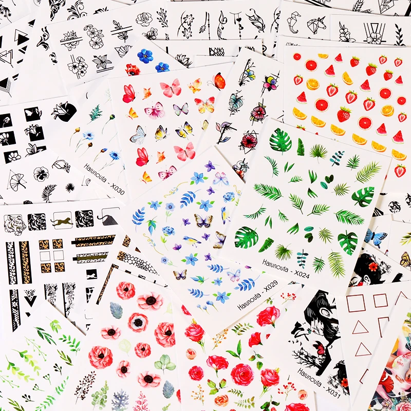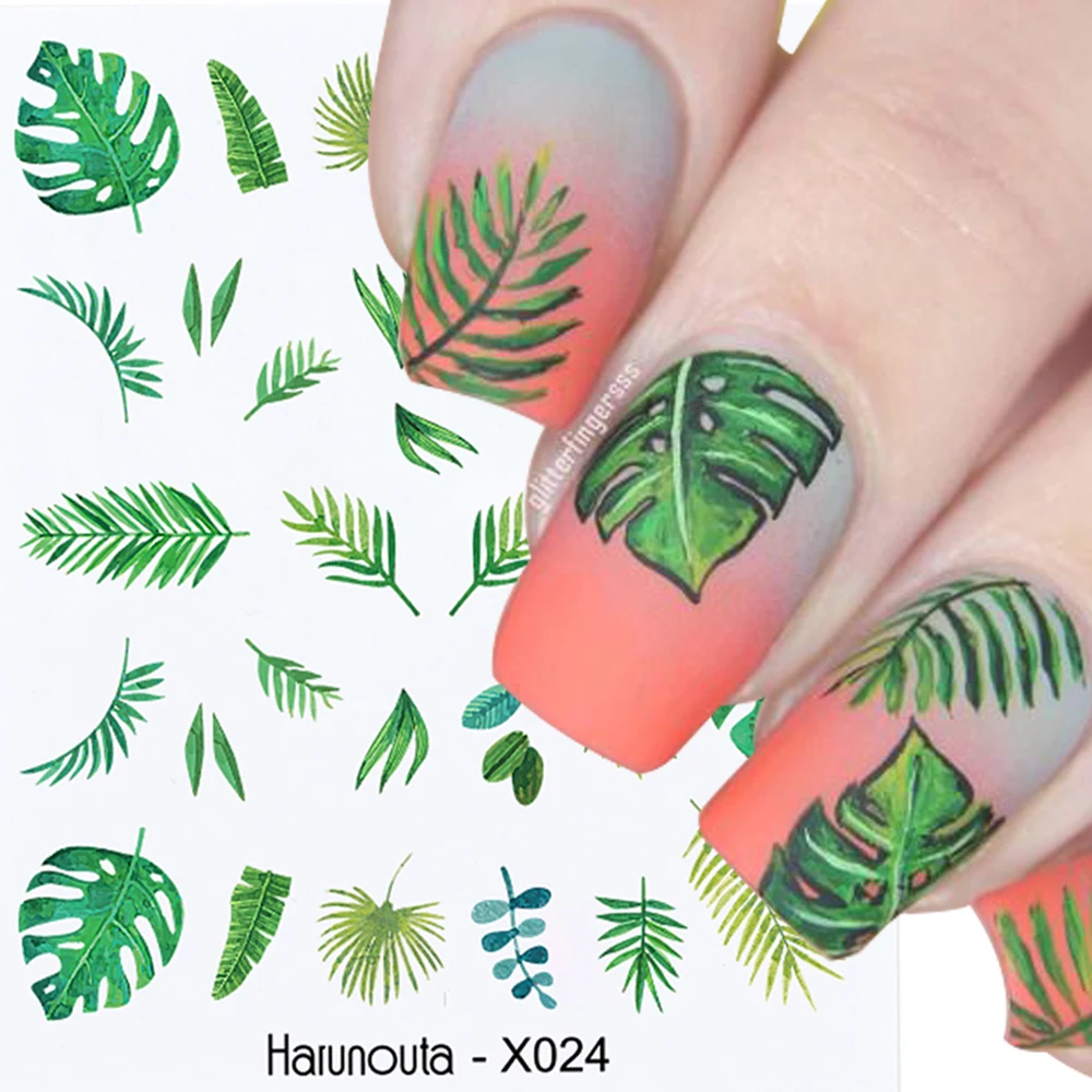 1 лист водных переводных наклеек для ногтей Harunouta, переводные наклейки с цветами, листьями, летними деревьями, зелеными листьями для ногтевого дизайна, декоративные наклейки для маникюра