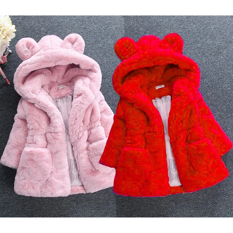 2021 зимняя плюшевая куртка для девочек с имитацией меха, сохраняющая тепло, верхняя одежда с капюшоном для детей, Детское пальто в рождественском стиле