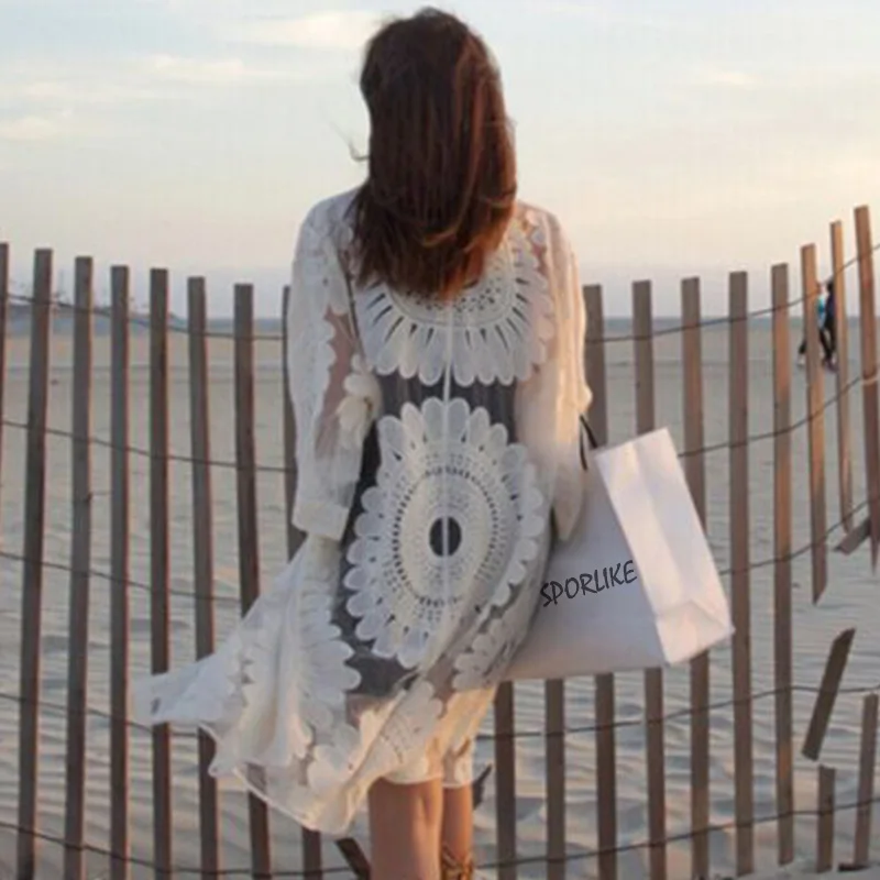 Новинка 2021, сексуальное кружевное пляжное длинное платье, кардиган, одежда для плавания, накидка, прозрачные вечерние сетчатые платья, платья-туники с вырезами