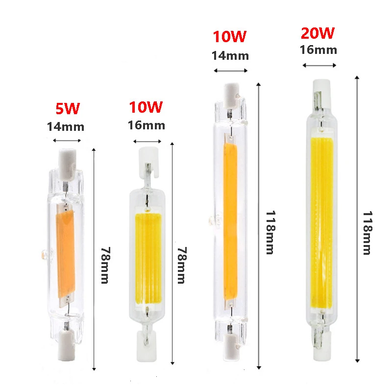 COB Светодиодная лампа 5 шт.лот R7S 5 Вт 10 Вт 20 Вт, затемняющий свет RGB, переменный ток 118 в, лампочка j78мм 189 м 100 мм, заменяемый Галогеновый прожектор 50 Вт