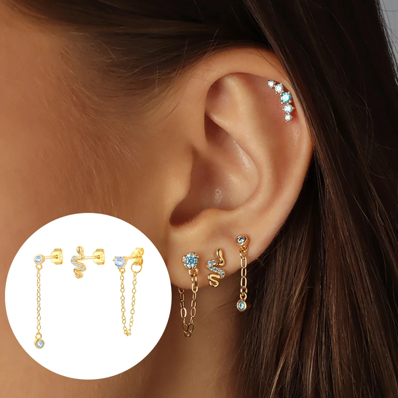 Женские серьги-гвоздики со змеиным плетением, серебро 925 пробы