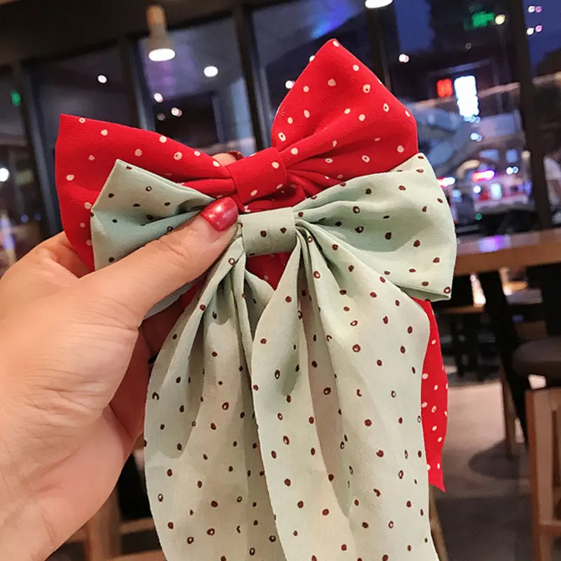 Прямая поставка, заколка в горошек с принтом, Длинная лента, зажим для волос с большим бантом, галстук-бабочка, аксессуары для волос