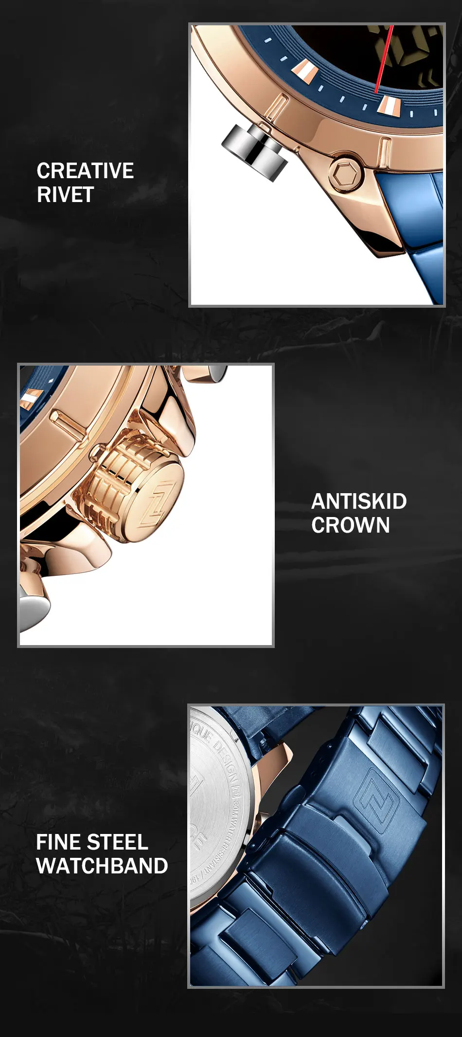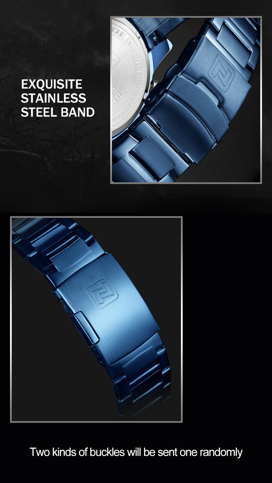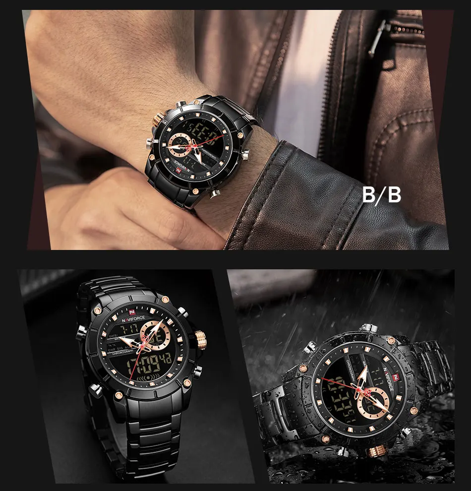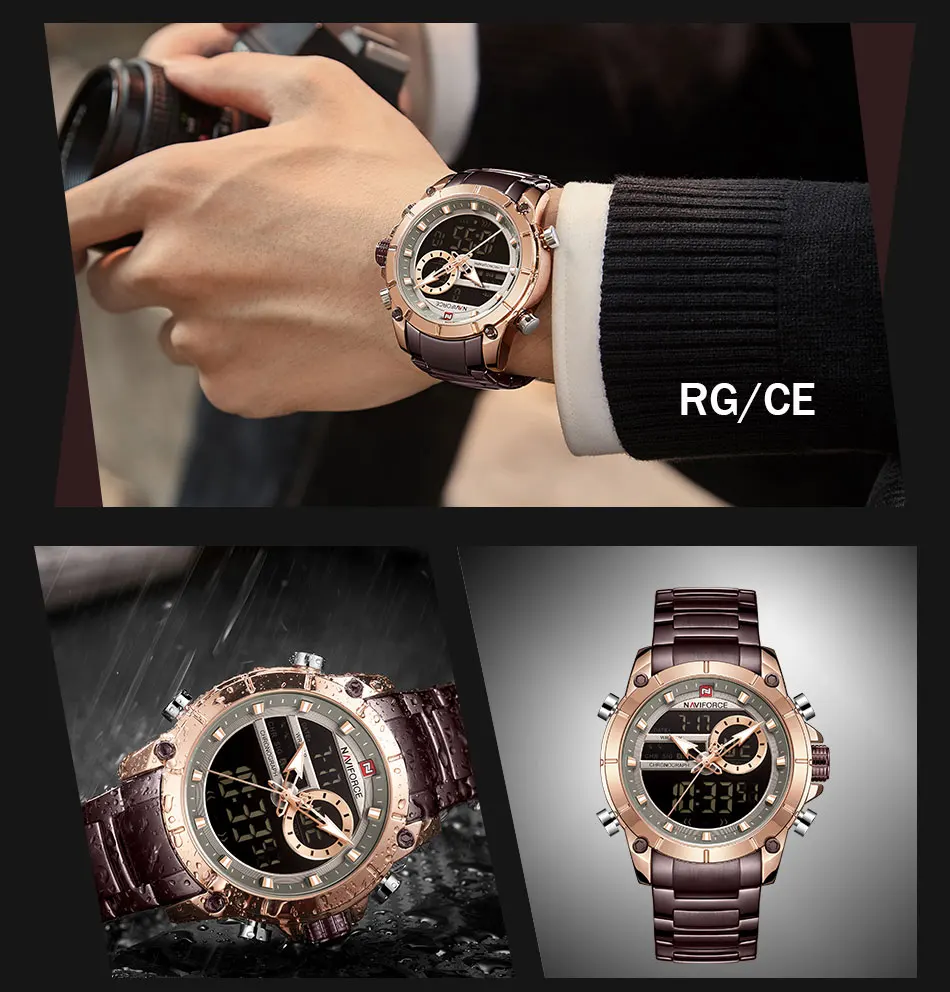 Часы наручные NAVIFORCE Мужские кварцевые, водонепроницаемые светящиеся с двойным дисплеем и большим циферблатом, из нержавеющей стали