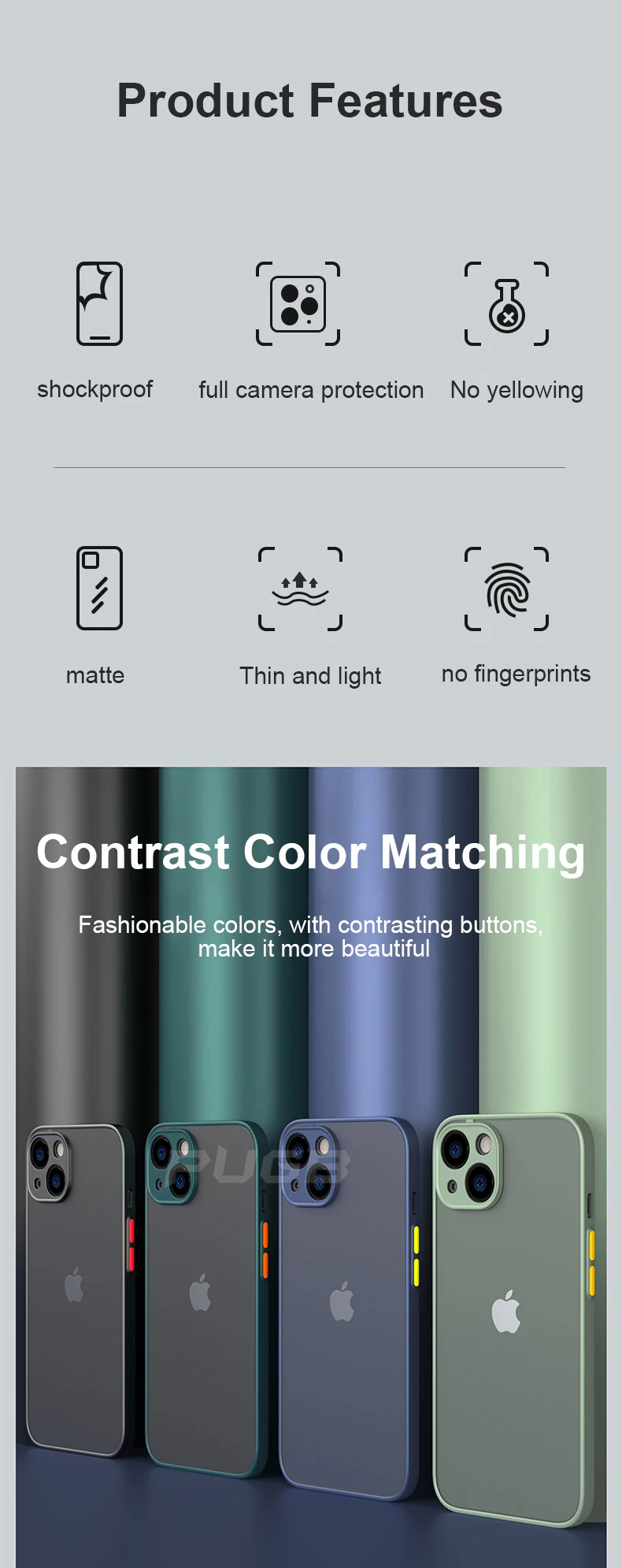 Характеристика: 1. Контрастные цвета на пуговицах, более модные; 2. Полная защита камеры; 3. Матовая задняя часть, защита от отпечатков пальцев. 4. Ударопрочный бронированный дизайн, более надежная защита.