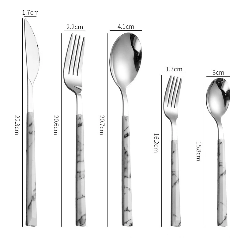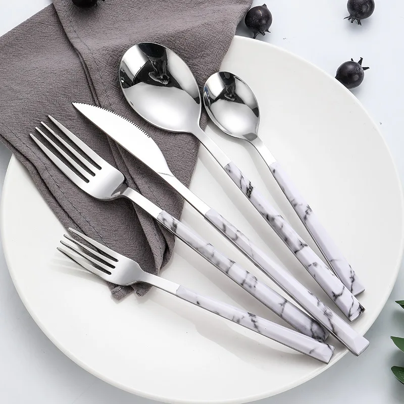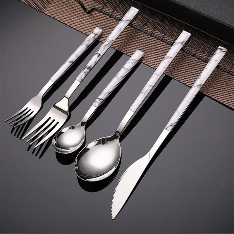 Столовая посуда из нержавеющей стали с мраморной ручкой, столовая посуда, столовая посуда, десертная ложка, настольный нож, вилка, чайные ложки, кухонная утварь