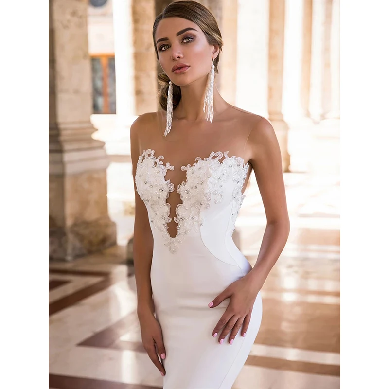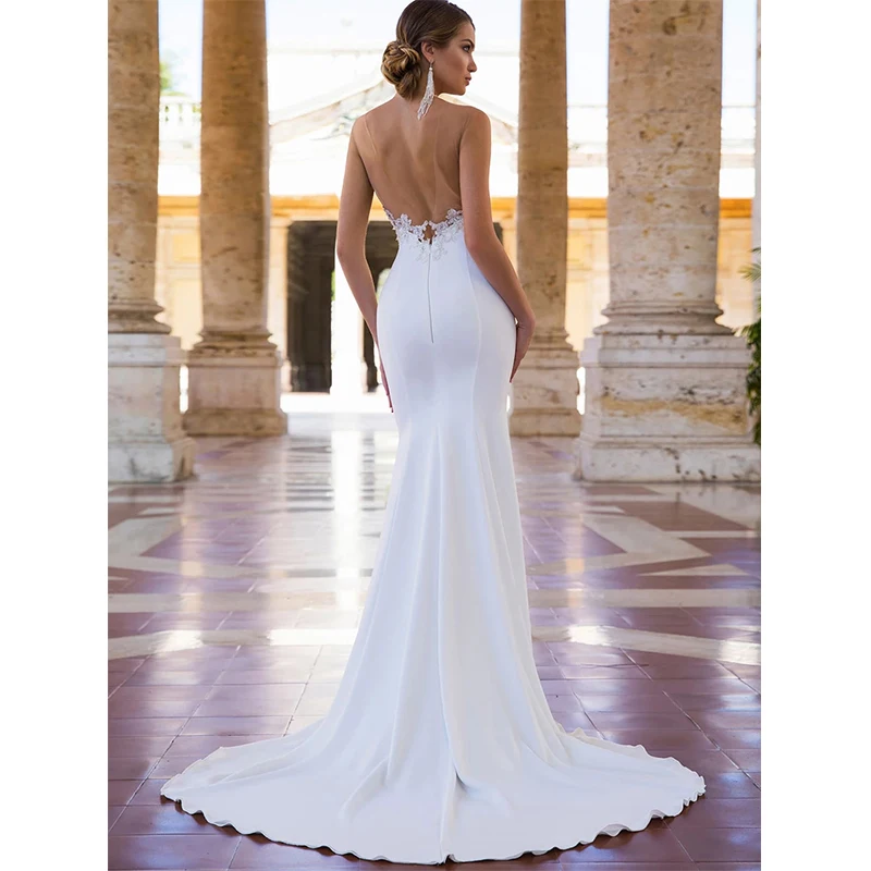 Соблазнительные Свадебные платья с открытой спиной и юбкой-годе, Роскошные атласные Простые Свадебные платья с круглым вырезом, аппликацией и кристаллами, Новое поступление 2021, индивидуальный пошив