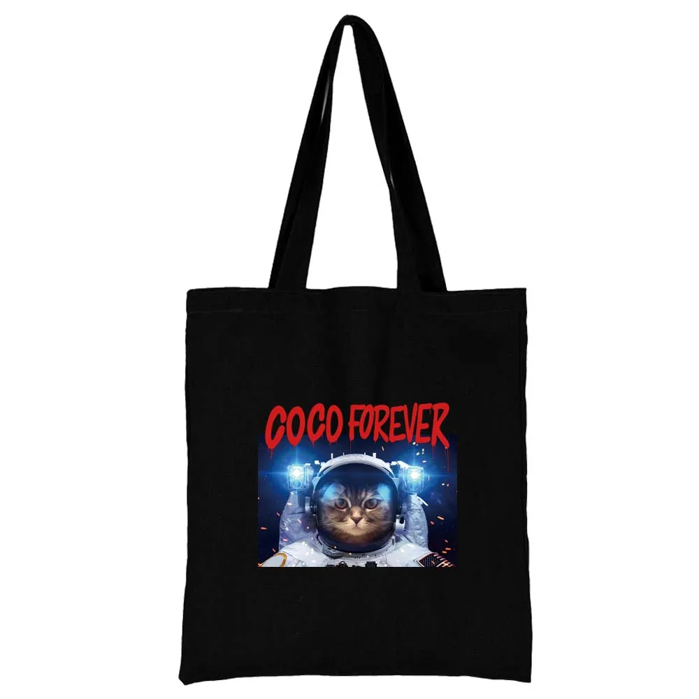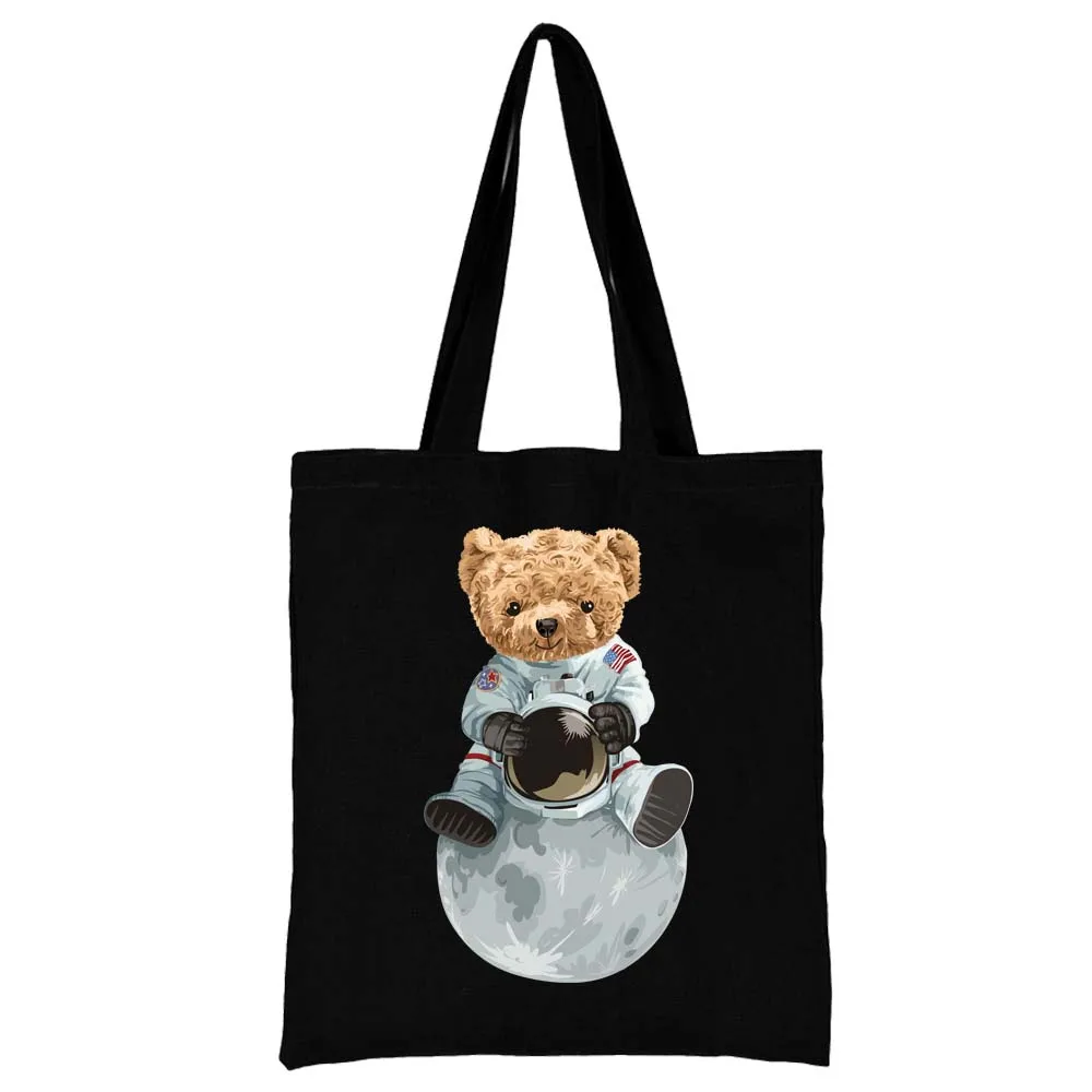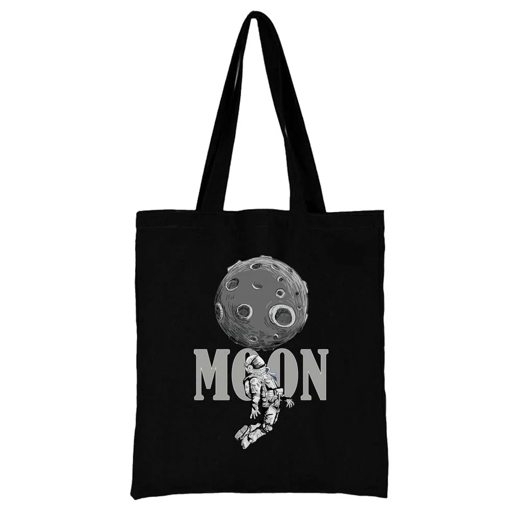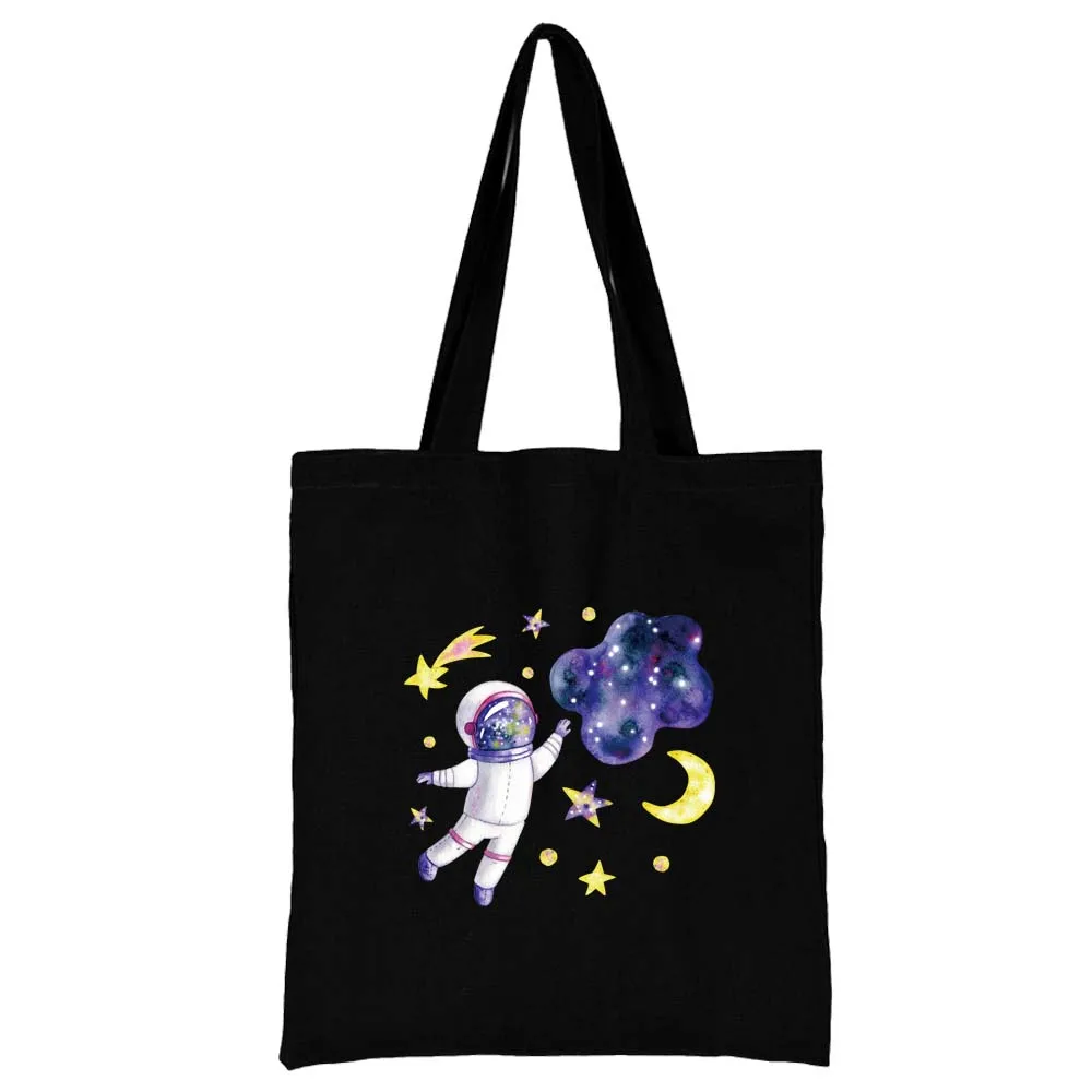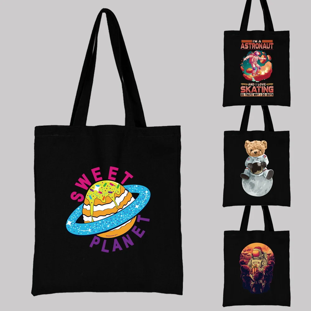 Женская сумка, сумка для покупок, сумка на плечо, Повседневная модная черная Холщовая Сумка с мультяшным принтом астронавта для студентов колледжа, можно использовать повторно