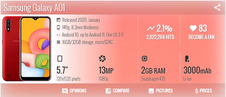 Номер моделиSamsung Galaxy A01 A015F