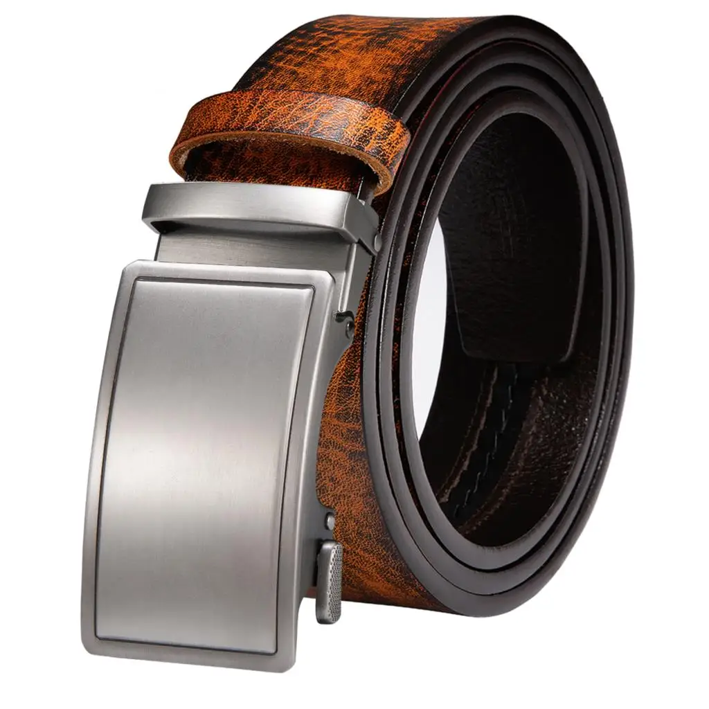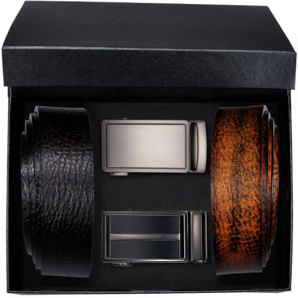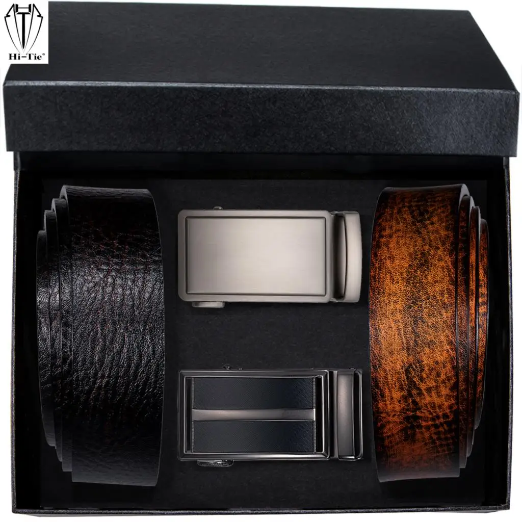 Hi-Tie Мужские Ремни Набор черные Серебряные автоматические пряжки поясной ремень с коробкой коричневый пояс из натуральной кожи для мужчин платье джинсы