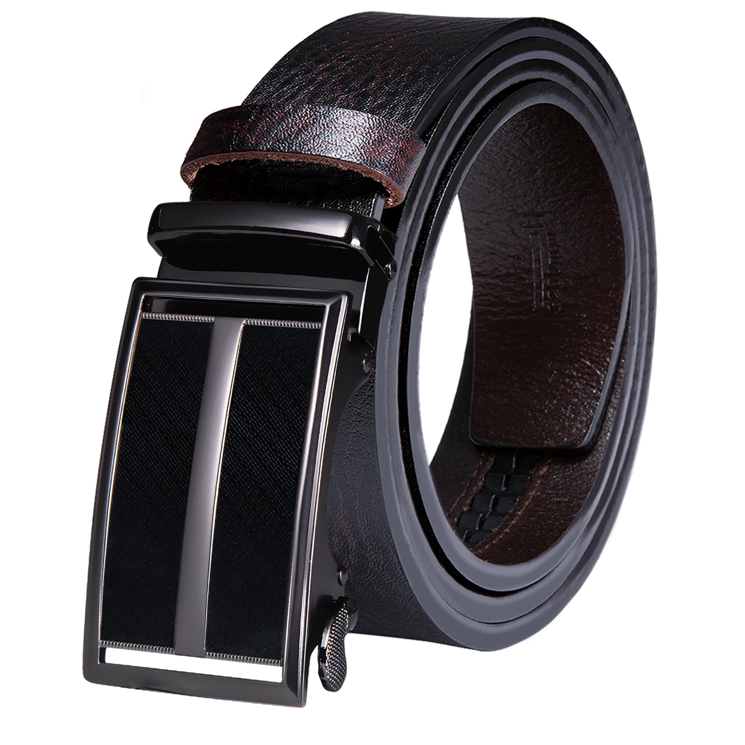 Ремень мужской из натуральной кожи, с автоматической пряжкой, темно...