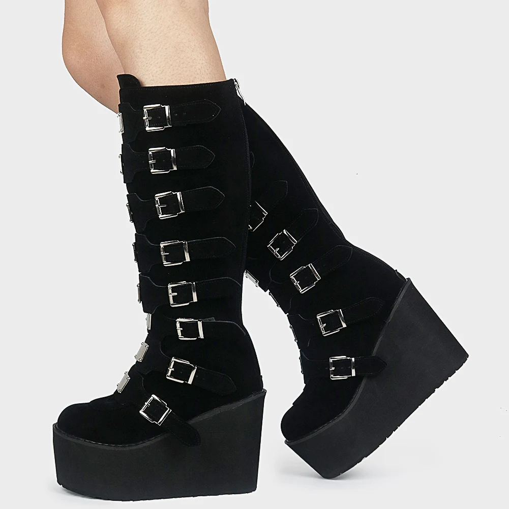 Женские мотоциклетные сапоги KarinLuna, сапоги до колена на массивной платформе, с пряжкой, в готическом стиле