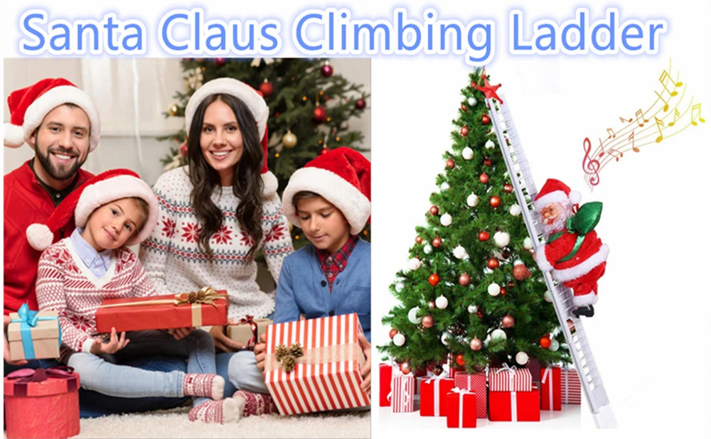 Рождественский Электрический Санта-Клаус, альпинистская лестница, плюшевая кукла, креативная музыка, Рождественский Декор, детская игрушка, подарок на Рождество, день рождения, подарки